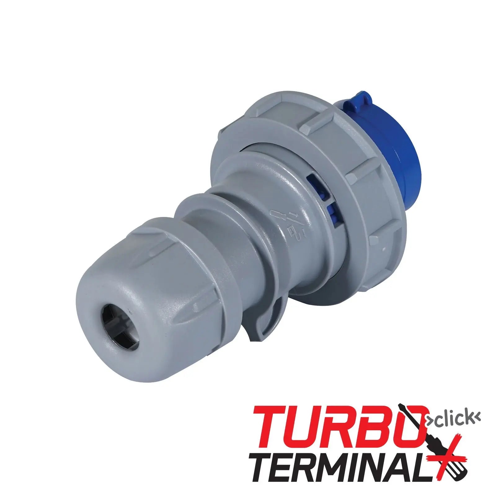 16A 110V 2P+E IP67 rated CEE-type cable plug suitable for power connections in the event and rental industry. Internal connections are made using the PCE Turbo Terminals a spring loaded connection designed for speed of assembly while delivering constant pressure for trouble free continuity. Turbo Terminals - Screwless terminals for rapid assembly Polyamide 6 body offers excellent impact resistance High abrasion resistance Multi-ramp quick lock body closure system Twist grip cable gland IP67 rated Made in the EU Grey body blends into lighter coloured environments better than all black or all blue connectors