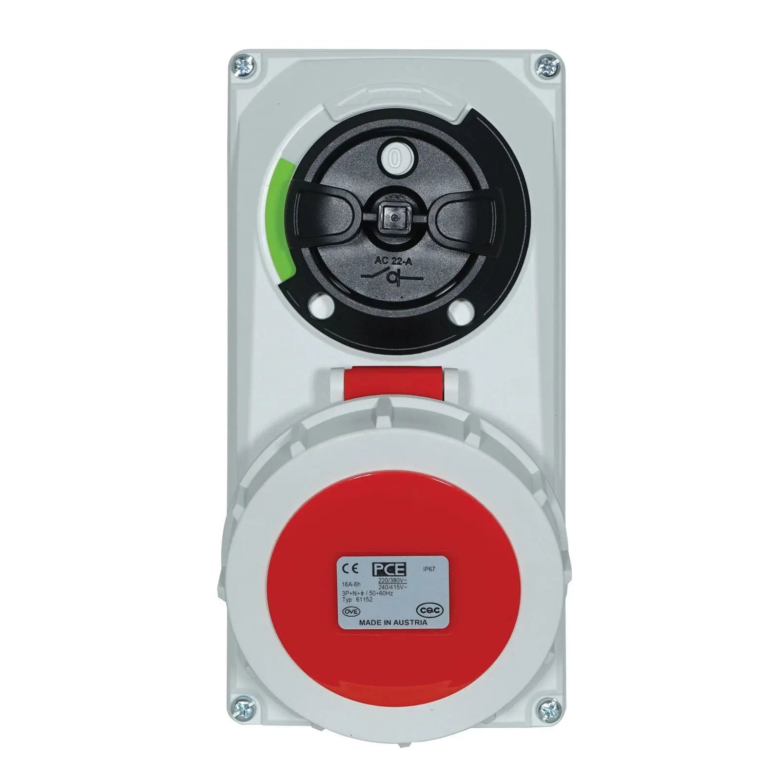 PCE 16A 415V 3P+N+E IP67 Switched Interlock Socket (61152-6)