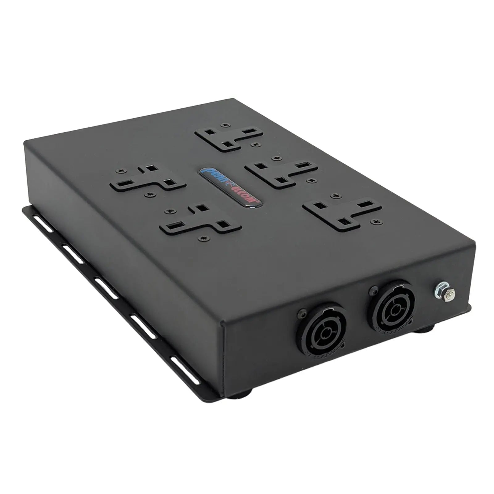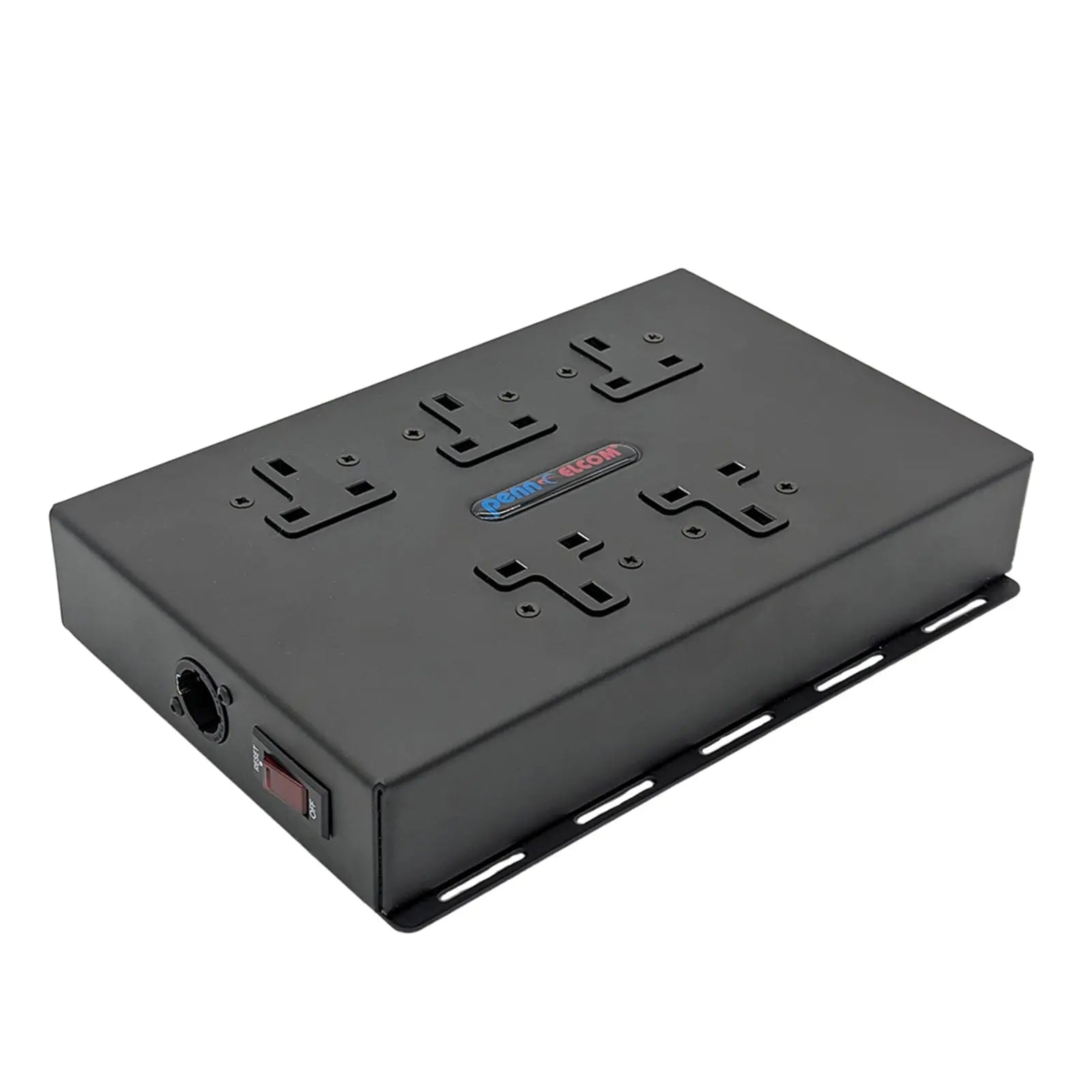 The Penn Elcom PDU16-5UK-T1 is a robust 13A power distribution board designed for professional stage and truss mounting applications. Featuring five UK 13A sockets Neutrik PowerCON True1-TOP in and dual link outputs and a 16A illuminated thermal breaker this unit delivers reliable high-performance power distribution for events touring and fixed installs. Housed in a durable steel chassis with truss and cable mounting points it supports a maximum load of 20A and is ideal for daisy-chaining multiple units safely and efficiently. 5 x 13A UK sockets Neutrik PowerCON True1-TOP input and dual link outputs 16A illuminated thermal breaker for protection Rear M10 captive nut for truss mounting Side slots for cable tie or Velcro securing
