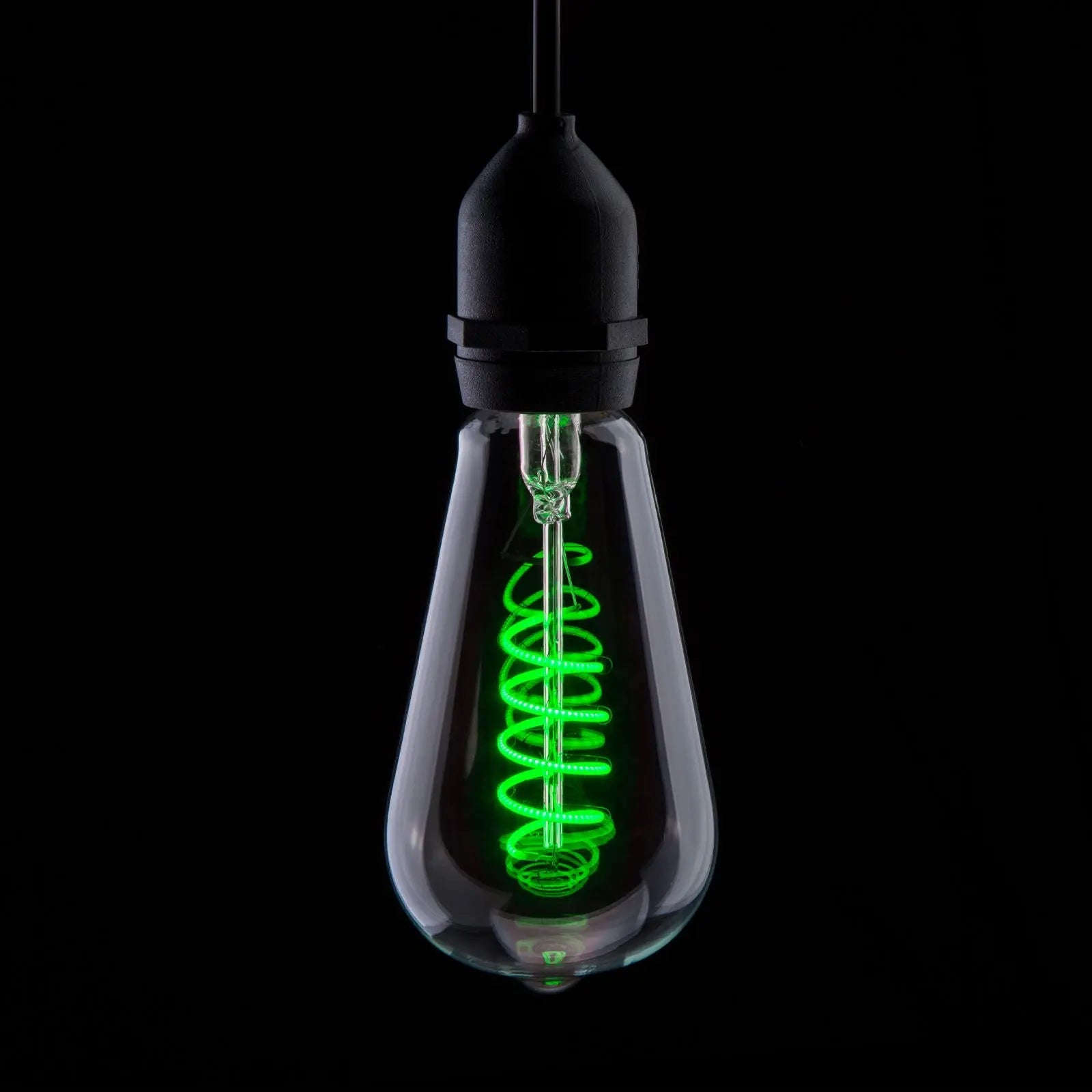 Prolite 4W Dimmable LED ST64 Spiral Funky Filament Lamp ES Green
