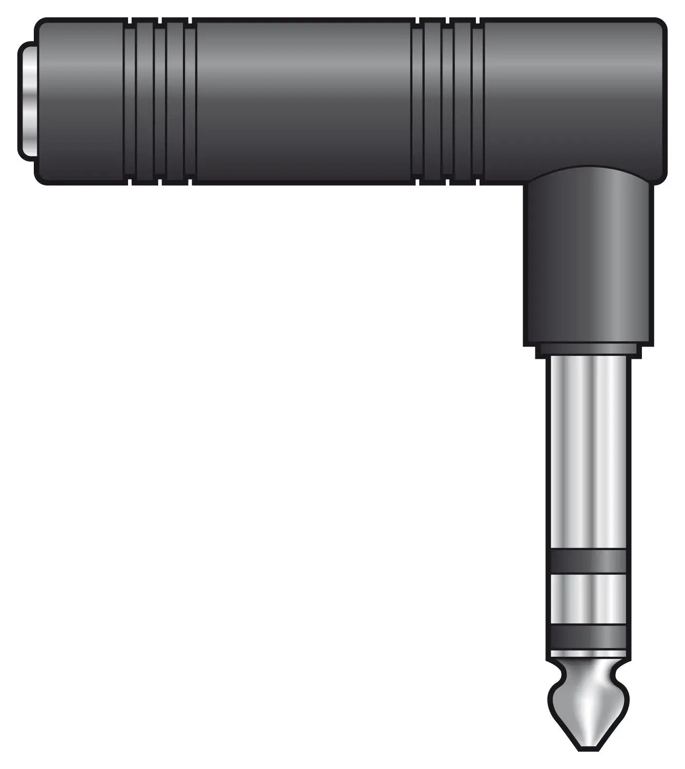 QTX Adaptor 6.3mm RA Stereo Jack Plug - 6.3mm Stereo Jack Socket