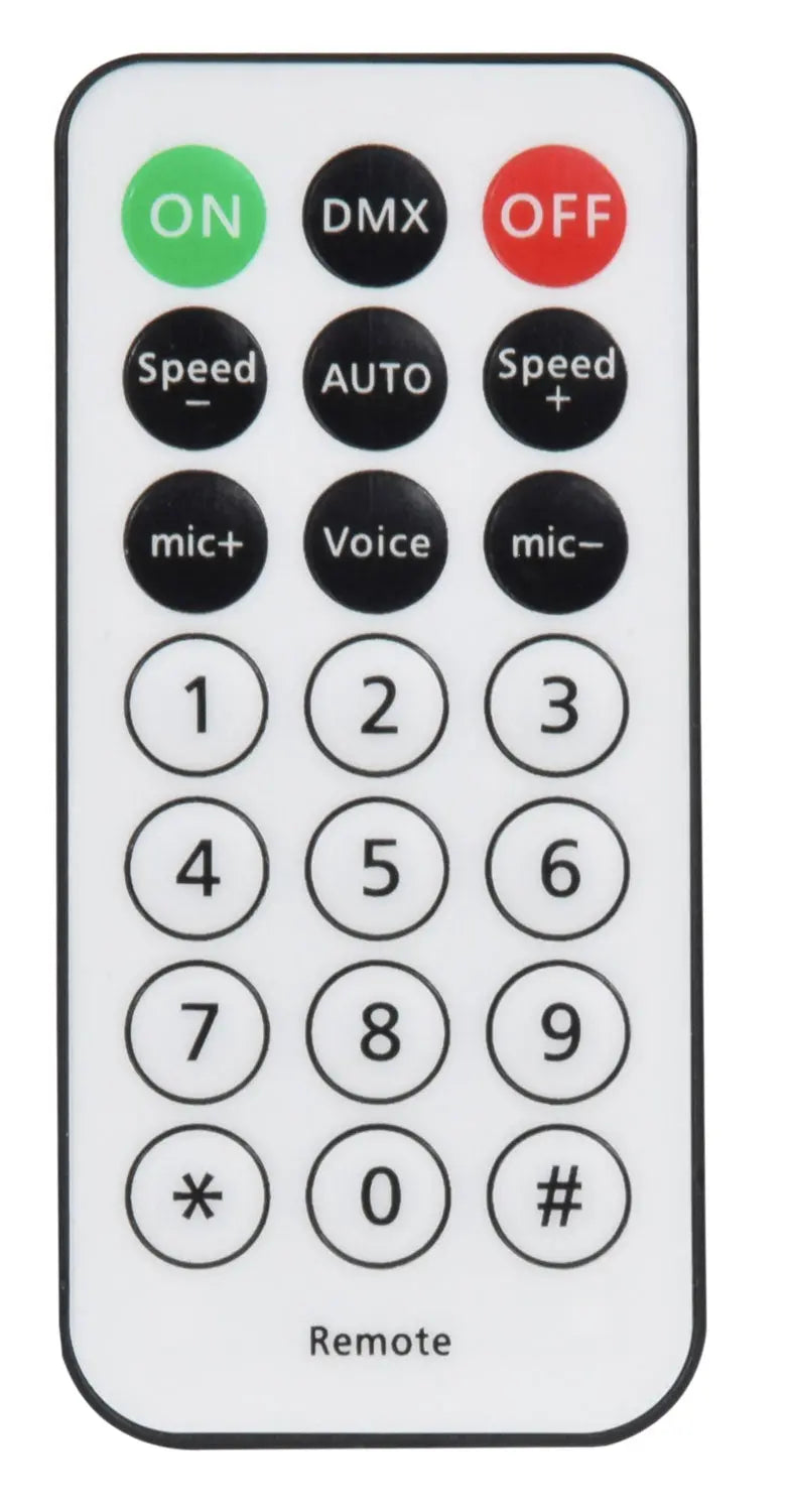 Modes Auto, Sound, DMX512, Master/Slave, Remote Control