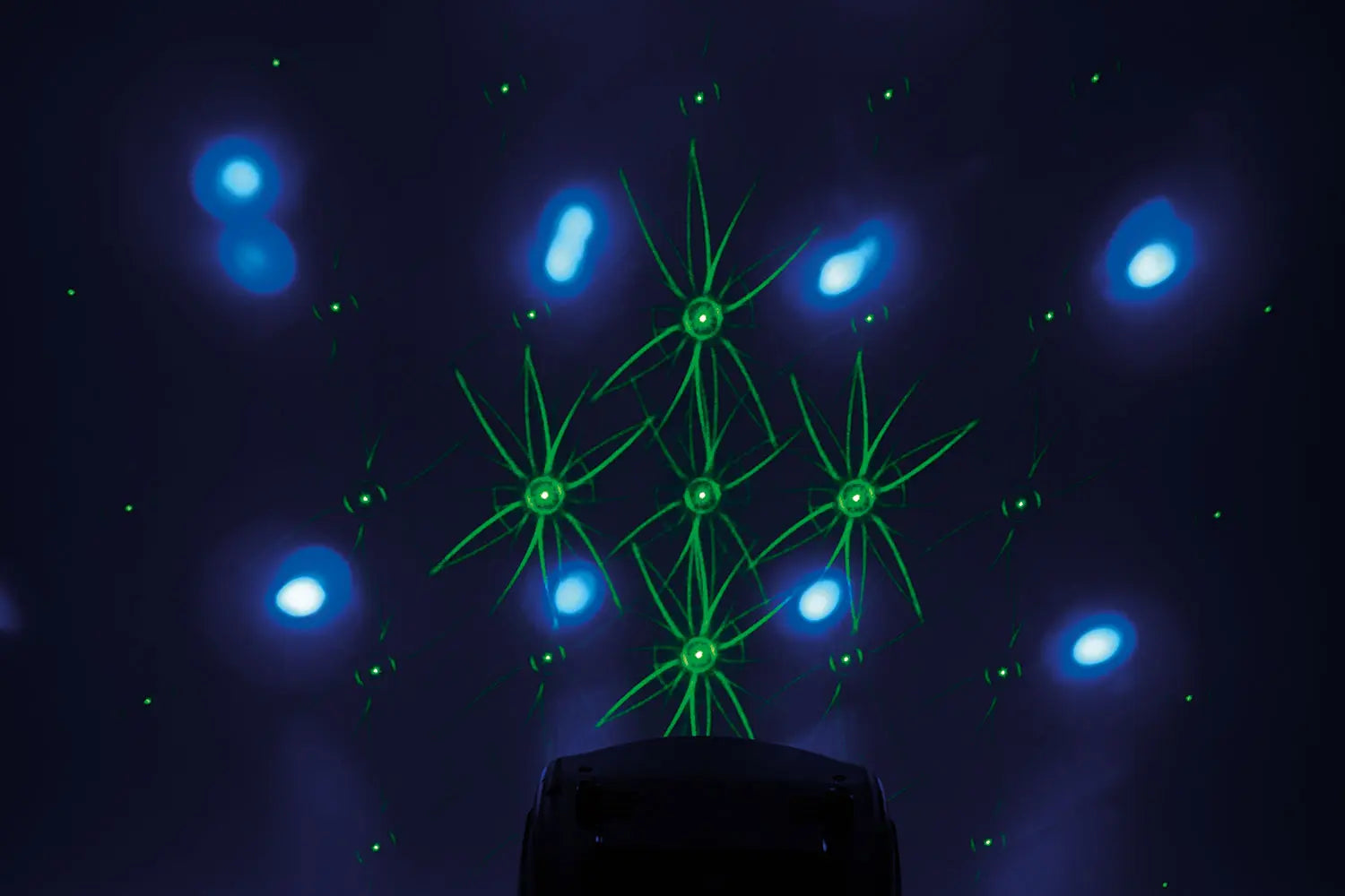 Comprising RGBW butterfly effect, RGB PARs and red/green laser