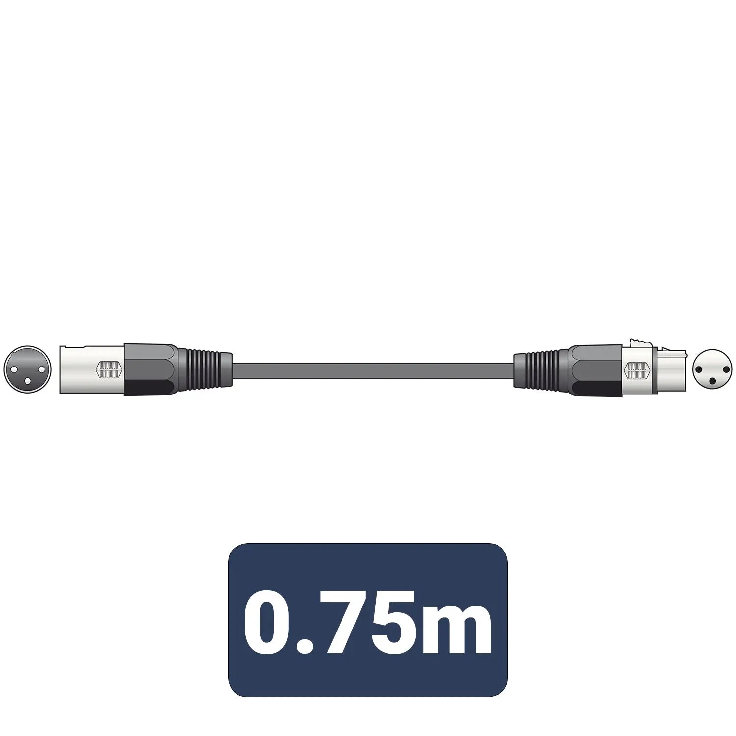 QTX DMX lighting lead, 3-pin XLR plug to 3-pin XLR socket - 0.75m