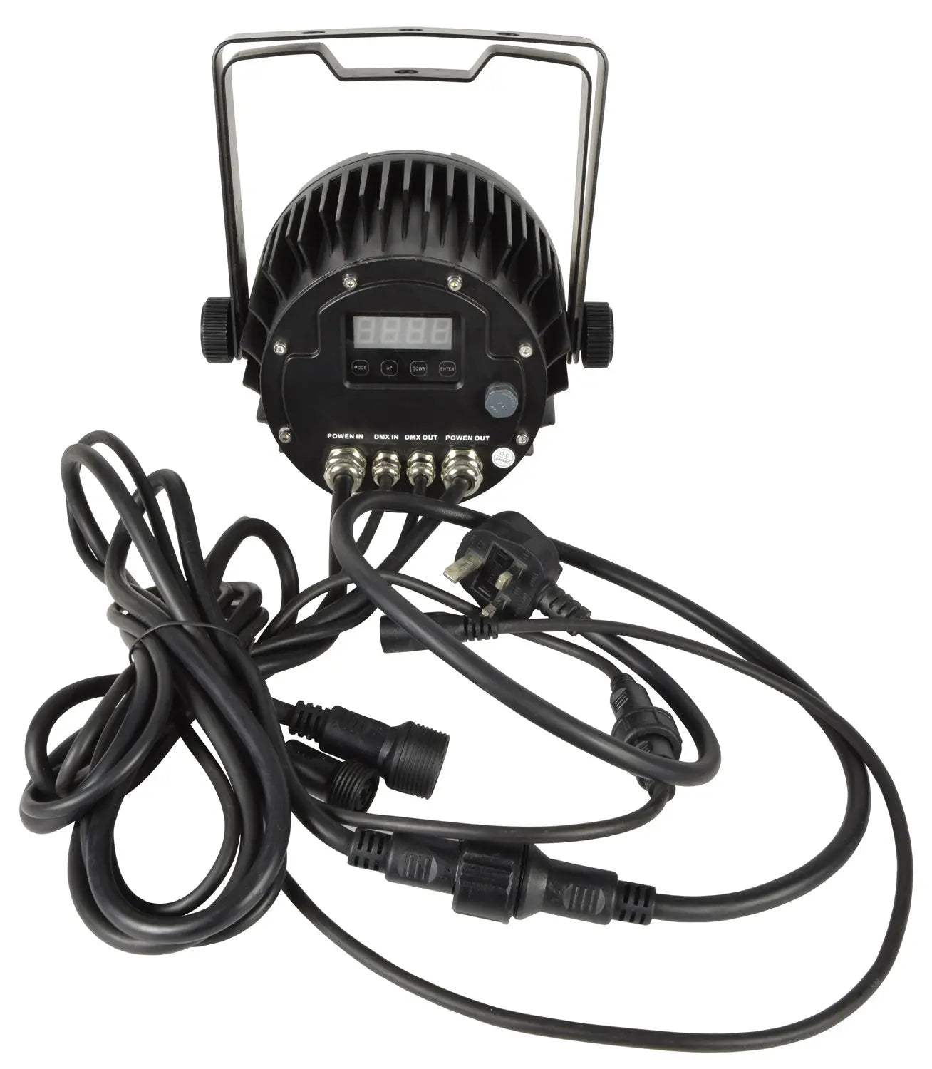 Pre-fitted with waterproof 1.3m IEC power and DMX leads (in and out)