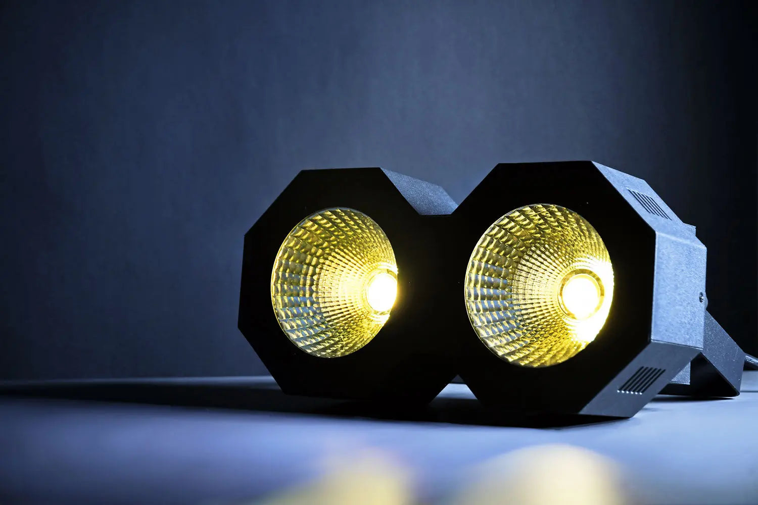 The HPWASH100 is a powerful 100W white LED stage-blinder for fully controllable light wash to stage or audience. Linear dimming control via DMX or internal programs can provide a smooth or immediate transition from blackout to full brightness. Housed in an all-metal casing with fan cooling for durability and reliable operation.