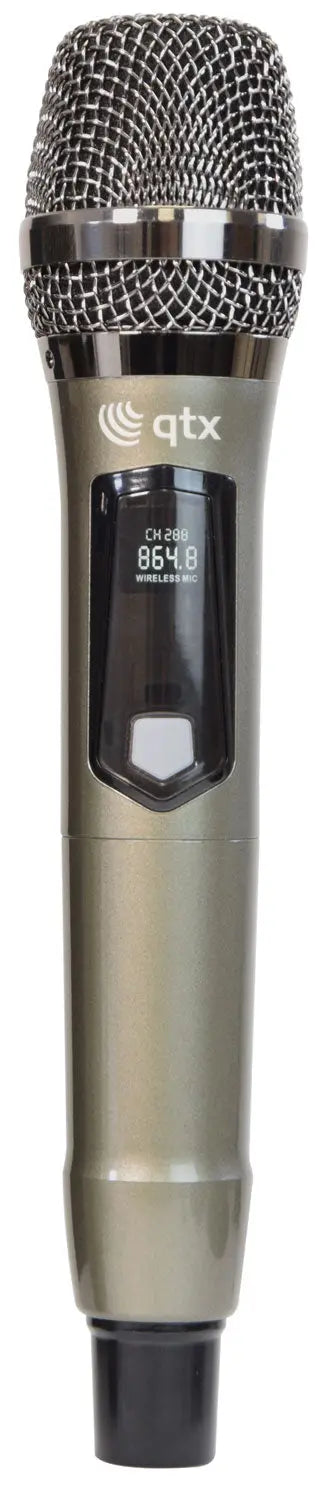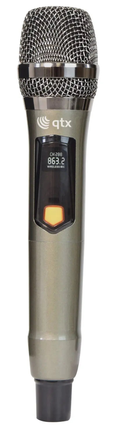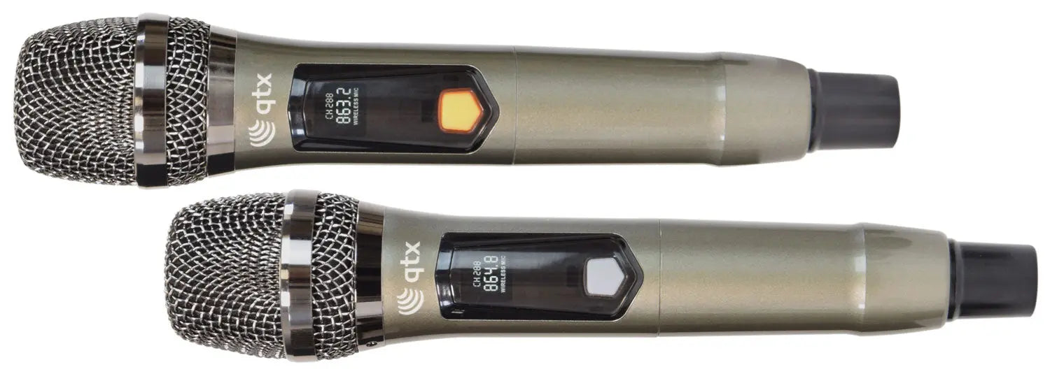 A compact and convenient UHF wireless microphone set with 2 x handheld transmitters and single plug-in receiver. The receiver is self-powered and rechargeable via USB, delivering a mix of both microphones to its single 6.3mm mono plug. The handheld transmitters are powered by 2 x AA batteries each and operate on 2 fixed UK/EU licence-free UHF frequencies. This system avoids the need for a free-standing or rack-mounted receiver and is a cost-effective and easy-to-use solution for 2-person presentations, conferences and vocal performers.