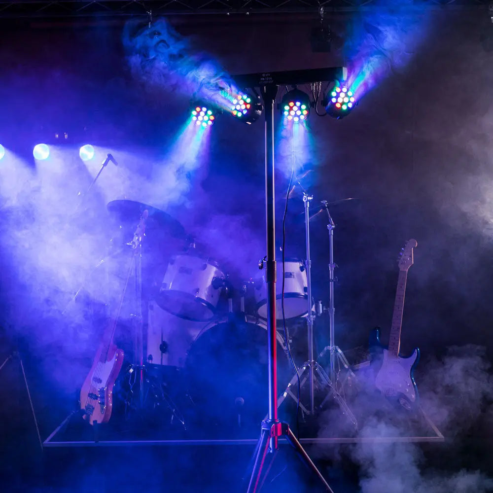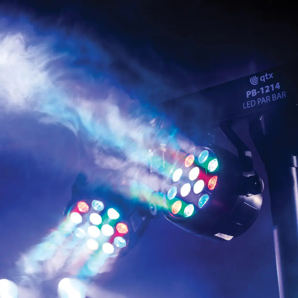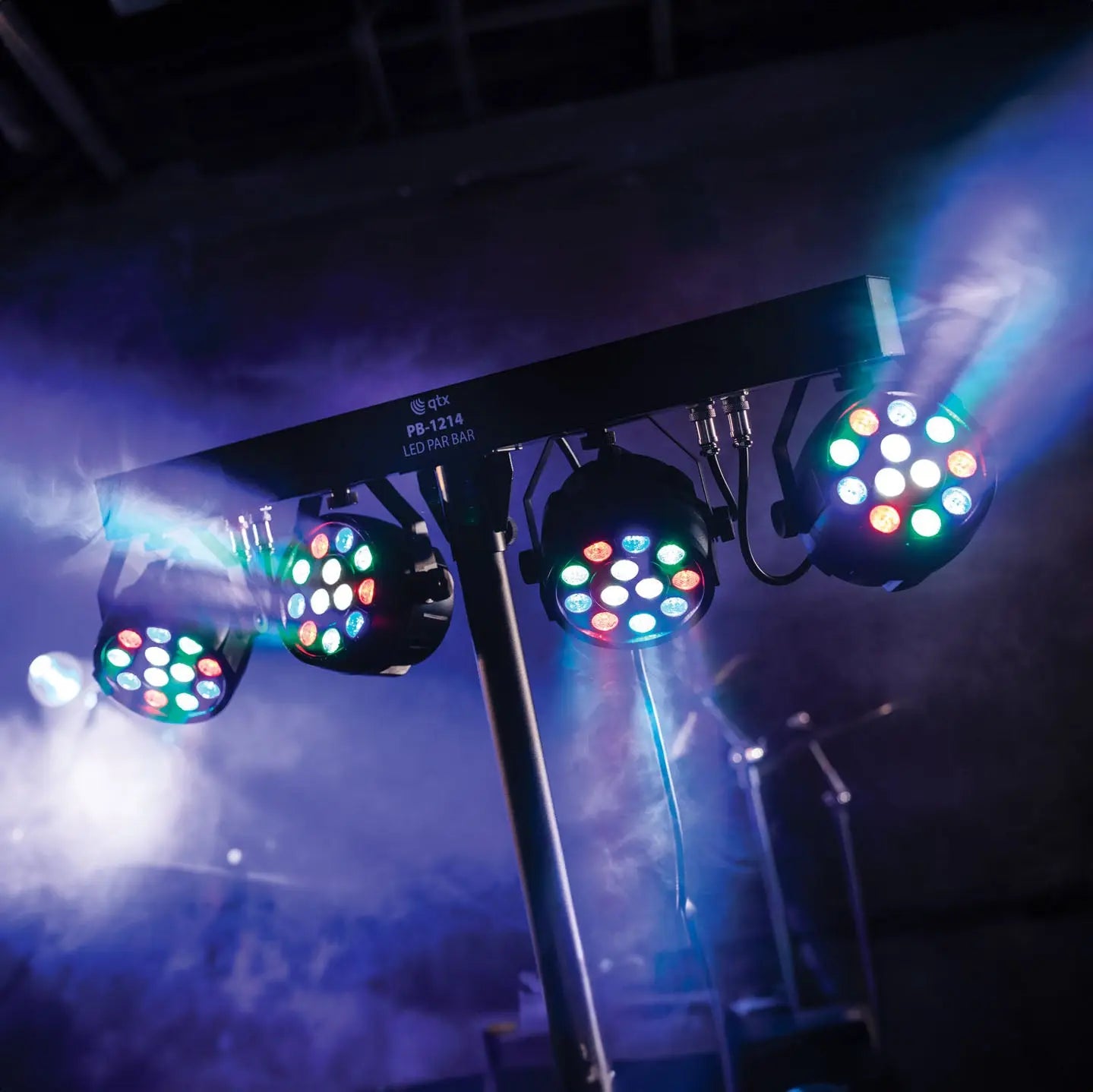 A lightweight, versatile PAR bar system, perfect for mobile DJs and performers who need their lighting to be quick to set up and easily transportable. 4 PAR cans are each loaded with 12 LEDs in red, green, blue and white for super smooth colour blending.