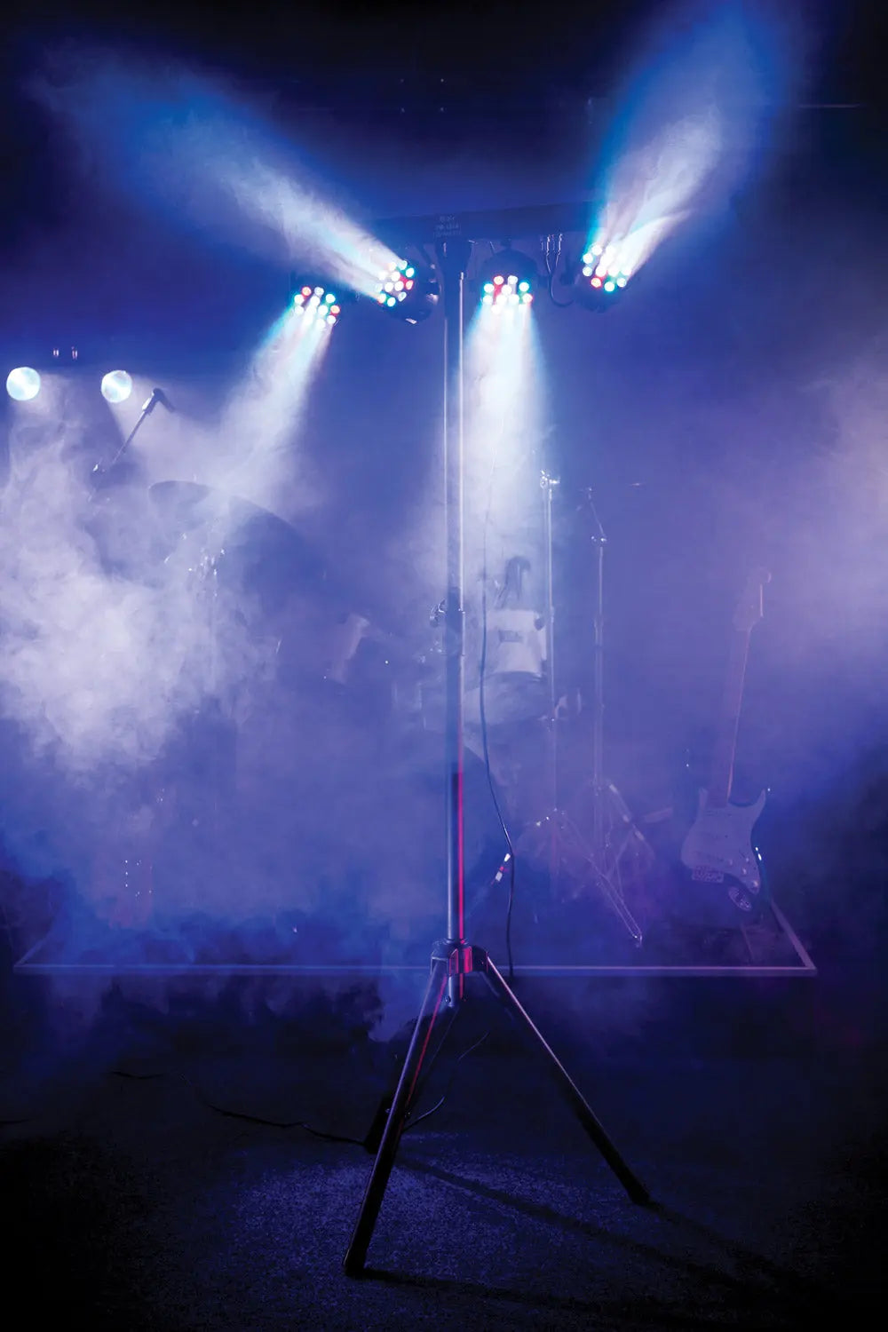 Includes PAR Bar, tripod stand, remote control and carry bags.