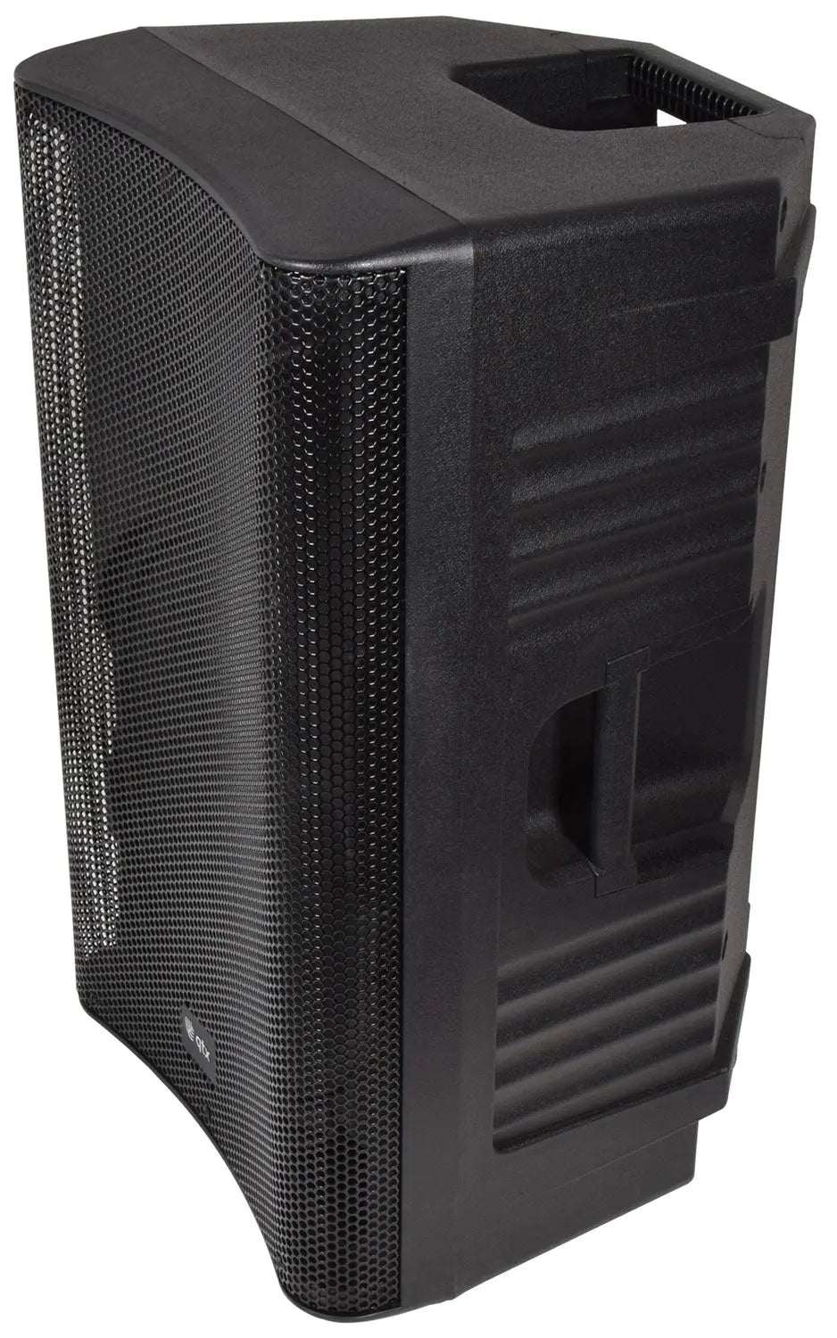 Active PA cabinets with inbuilt amplifier in a moulded polypropylene enclosure. Inputs for microphone and line level input have independent volume settings, with connection options of jack, XLR, RCA or minijack. An inbuilt audio player with independent volume control can accept USB or SD media with mp3 tracks or operate as an FM tuner or Bluetooth® receiver. Output is governed by Treble and Bass tone controls and can be output via an XLR line output. The internal amplifier also has an output for a passive speaker to make a convenient 2-speaker PA system. A comprehensive PA option for DJs, stage performers and presentations.