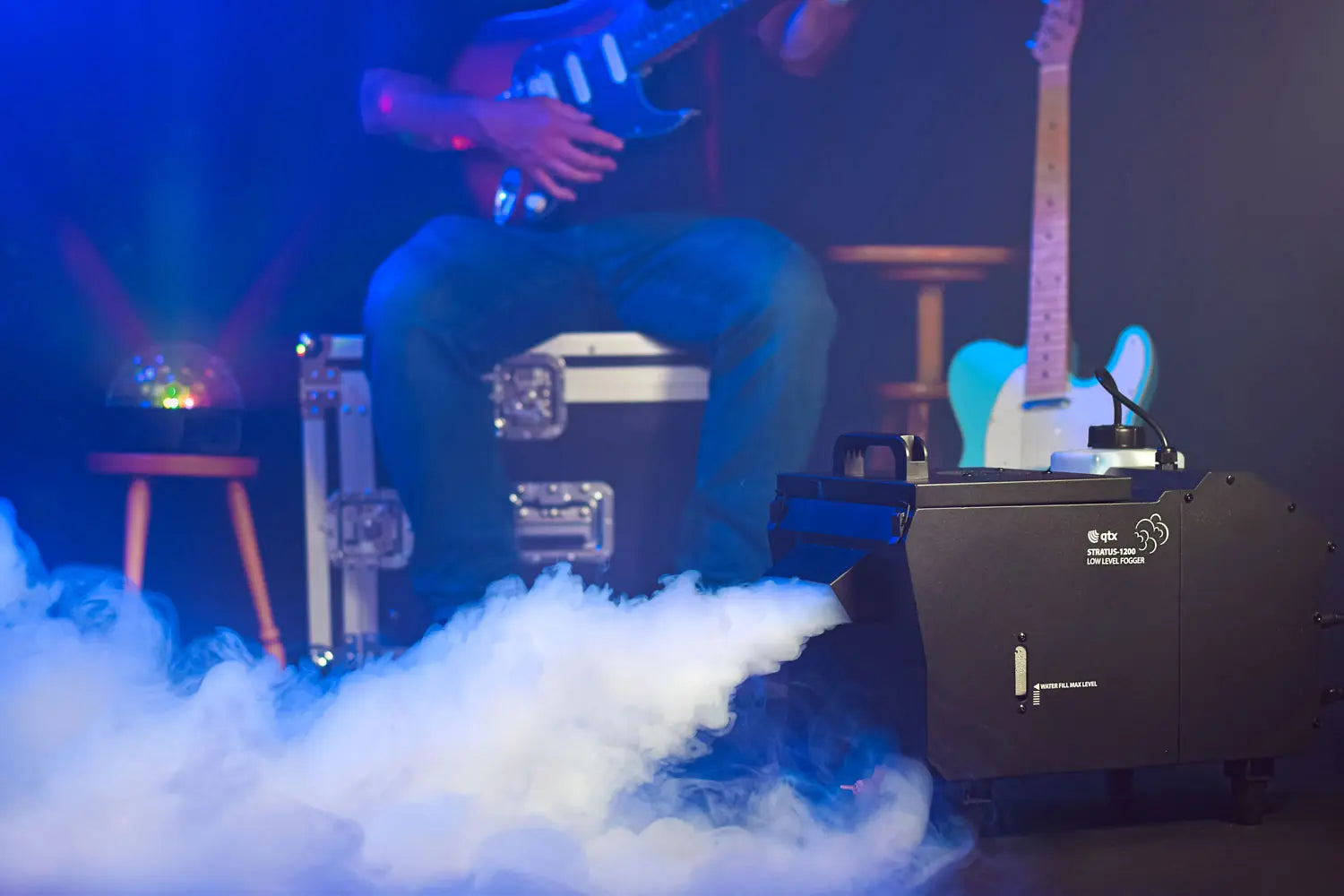 Small form factor, portable effect machine producing "dry ice" type low fog effects without the use of carbon dioxide or ice. New technology delivers a ground-hugging, flowing mist from standard fog fluid and water, perfect for stages, theatres and themed events. The main unit has a removable fluid tank and easy access water reservoir with drain tap and can be operated by a wired digital control panel, seperate RF remote or 2 channel DMX connection if required.