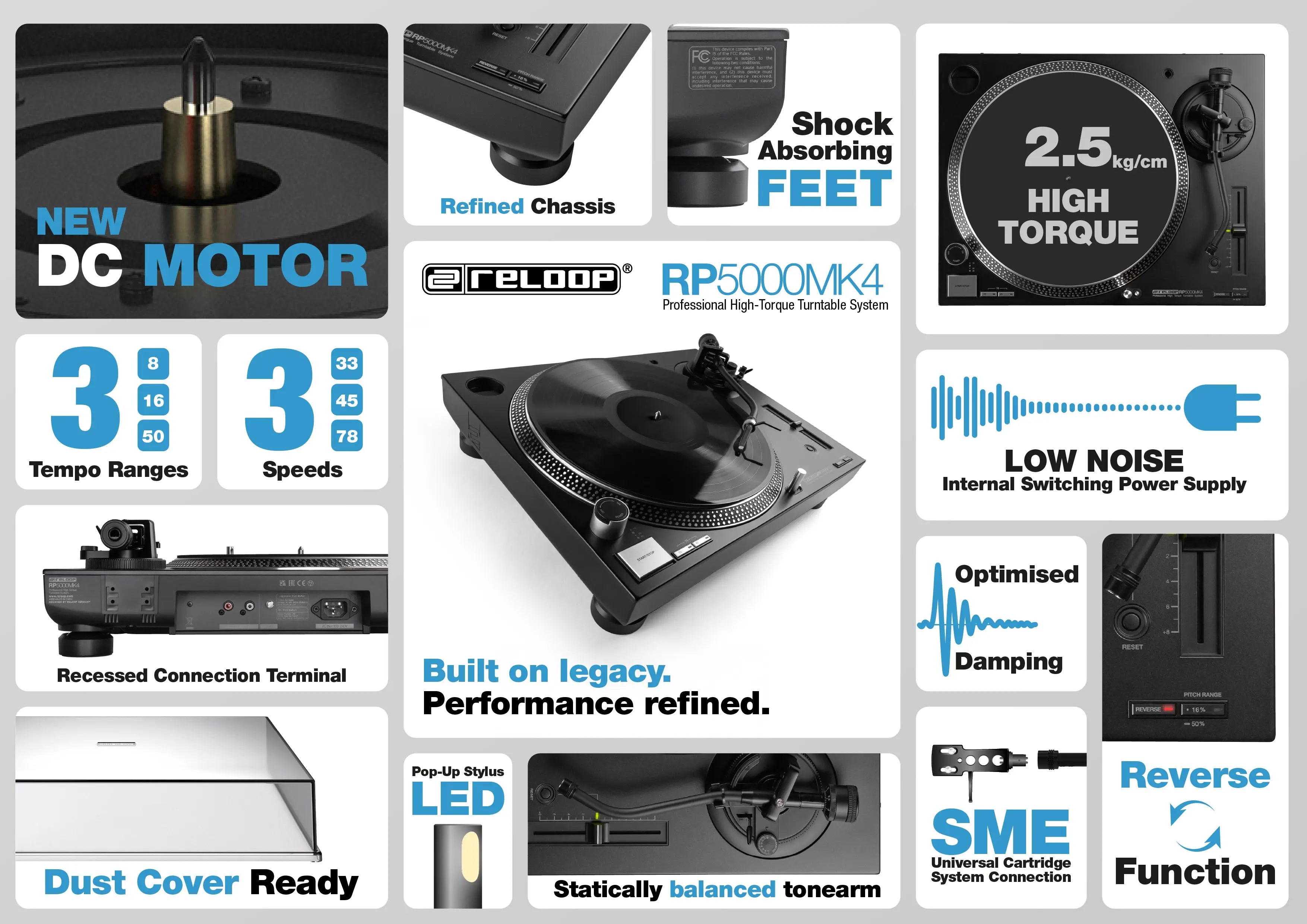 The Reloop RP-5000 MK4 represents the next evolution in professional analog performance. Engineered for DJs who demand the perfect balance between high-torque power and surgical precision, the MK4 refines the legendary features of its predecessors while introducing a newly developed brushless motor and a vibration-damped chassis. Whether you are navigating a high-energy club set or perfecting an advanced scratch routine, the RP-5000 MK4 is your most reliable tool in the booth.