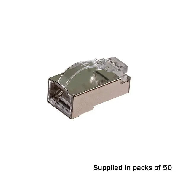 Our Category 6A STP snagless RJ45 8p8c arc latch plug avoids the need for an anti-snag from the strain relief boot; leads can more easily be removed from panels or sockets without the encumbrance of rubber boots. Strain relief boots can be omitted without risking snagging. Shielded Compliant with Category 6A patch cord standard Snagless arc latch design avoids tangling and breakage of latch Three prong pin fits stranded or solid cores 23 – 26 AWG / 0.573 – 0.404mm with insulation OD 0.98 – 1.05mm Suitable for termination of solid or stranded STP cables with sheath O.D. of 5.5 – 6.5mm Two piece design with 3 up 5 down configuration to maintain separation