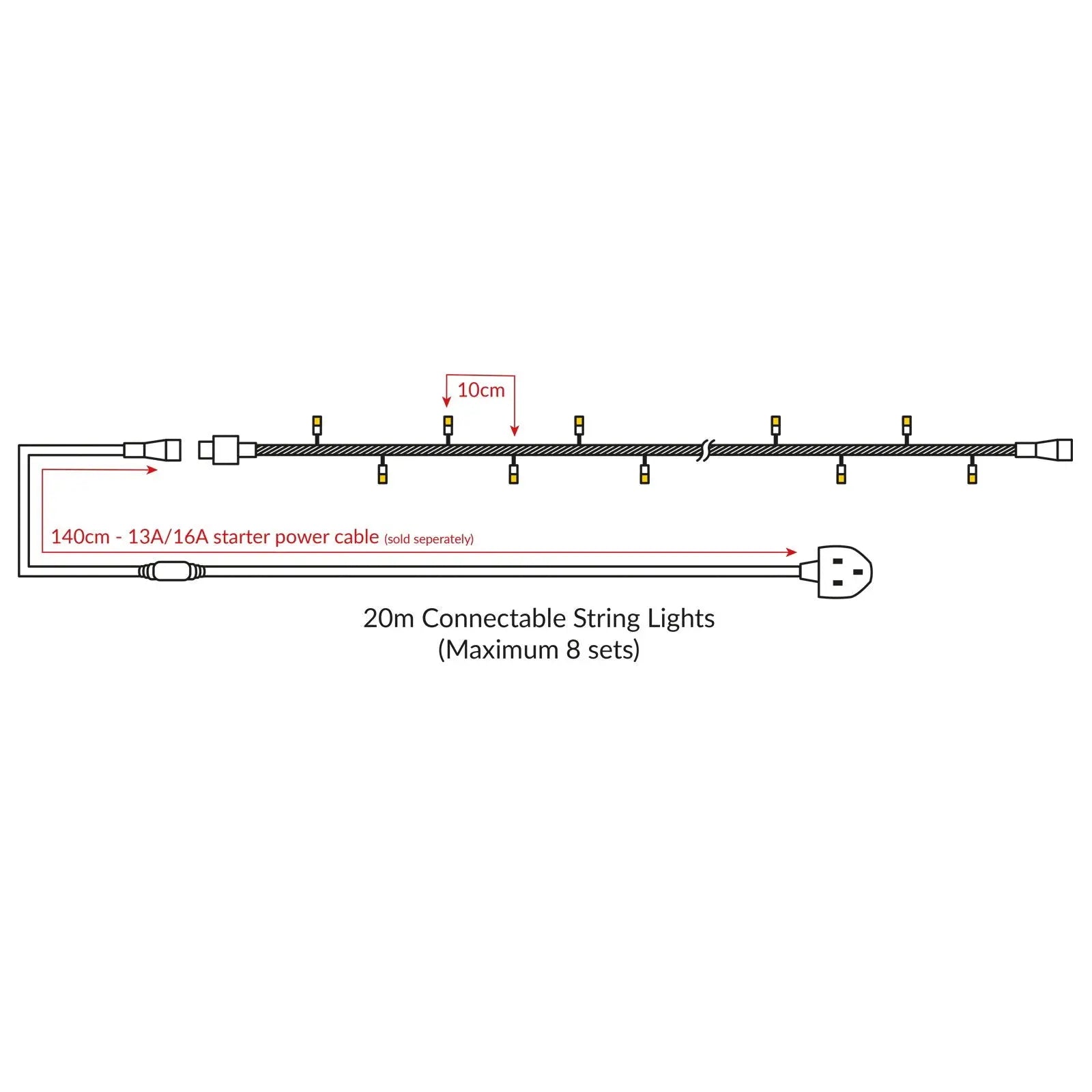 Rubber Connectable Dimmable LED String Lights Warm White 20m