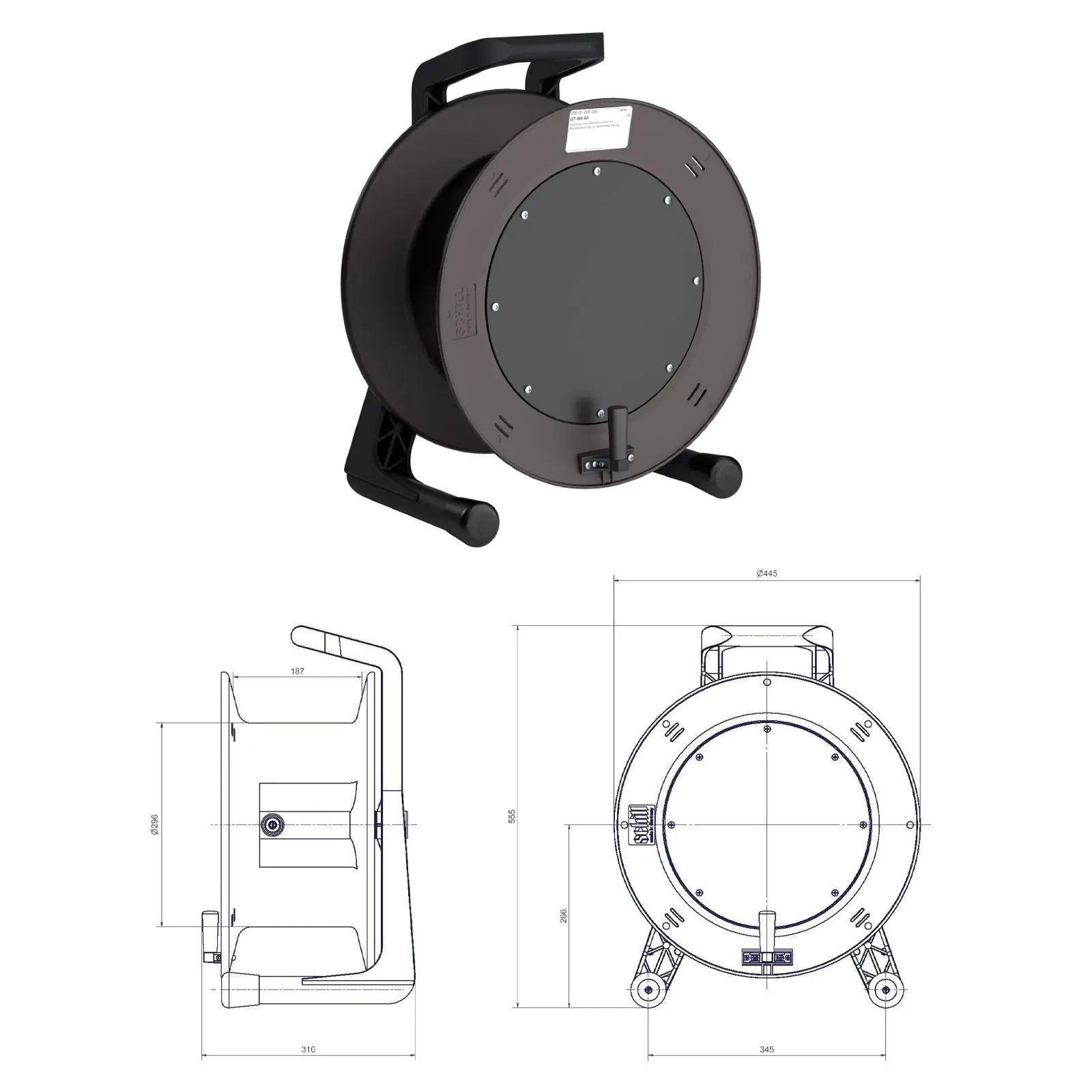 Rugged cable reels often classed as the industry standard within the sound lighting and events sectors. Manufactured in Germany using carefully selected materials to avoid breakages or failures onsite or in use. Being impervious to chemicals petrol and oil these cable reels are ideally suited to environments where such substances are prevalent. With an operating temperature of -20°C to +100°C and being weather-resistant these reels can cope with the most inhospitable conditions. 5 year warranty Supplied with blank cover for self-tooling Break-proof PVC frame with locking drum brake PVC winding reel with unbreakable one-piece side flanges made of synthetic rubber Supplied without cable Folding winding handle Max. capacity: 363m microphone cable (approx.) Drum: 450mmØ Weight: 5.4kg Manufacturers part number: GT 450.S0