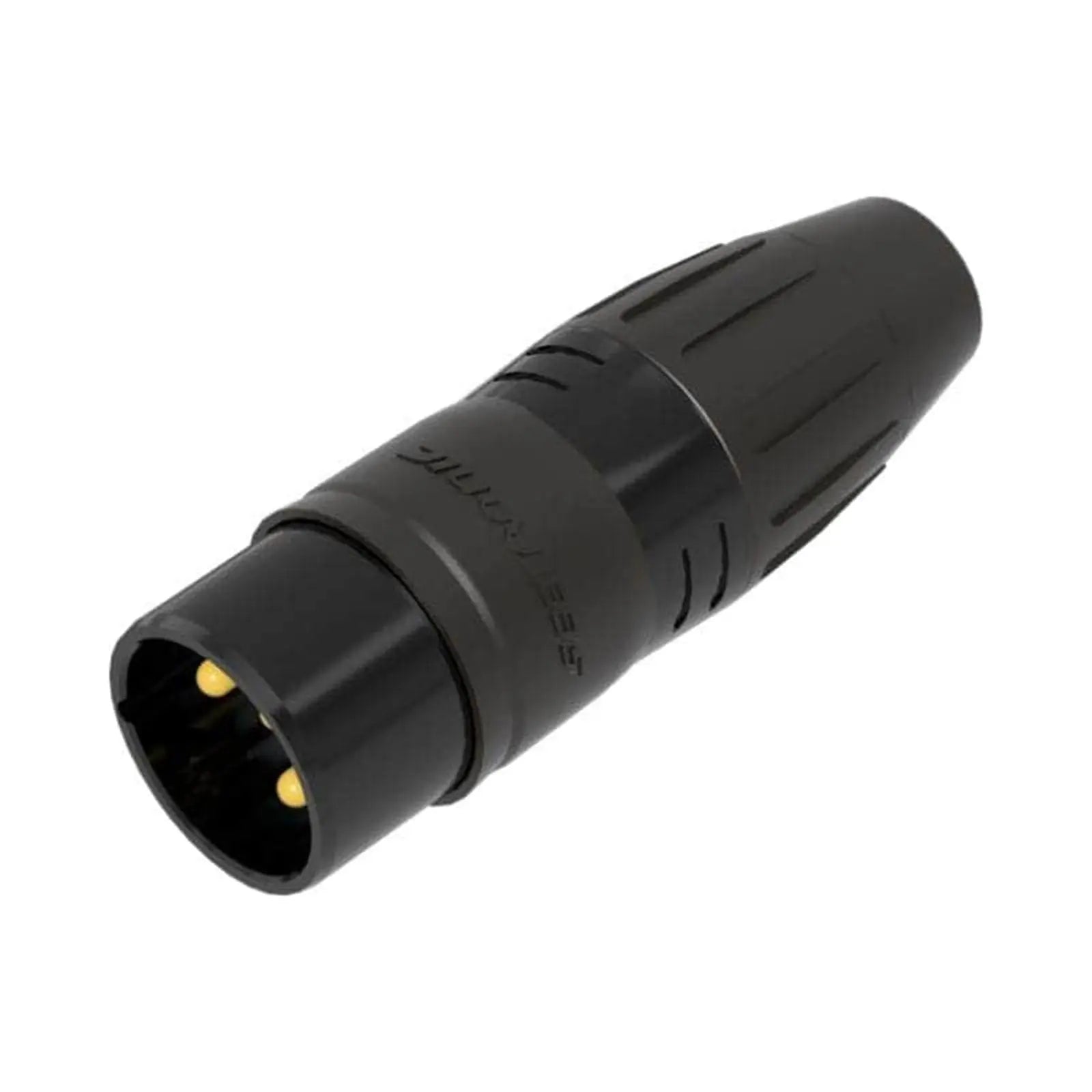 The Seetronic SCWM3‑B‑67 is a rugged IP67-rated 3-pin XLR male cable connector built for harsh environments. Featuring a black zinc die-cast housing gold-plated Cu-alloy contacts and a polyurethane sealing boot this connector ensures superior strain relief corrosion resistance and waterproof protection. Designed for outdoor AV stage broadcast and industrial applications it delivers up to 16 A per contact and exceeds 1000 mating cycles.