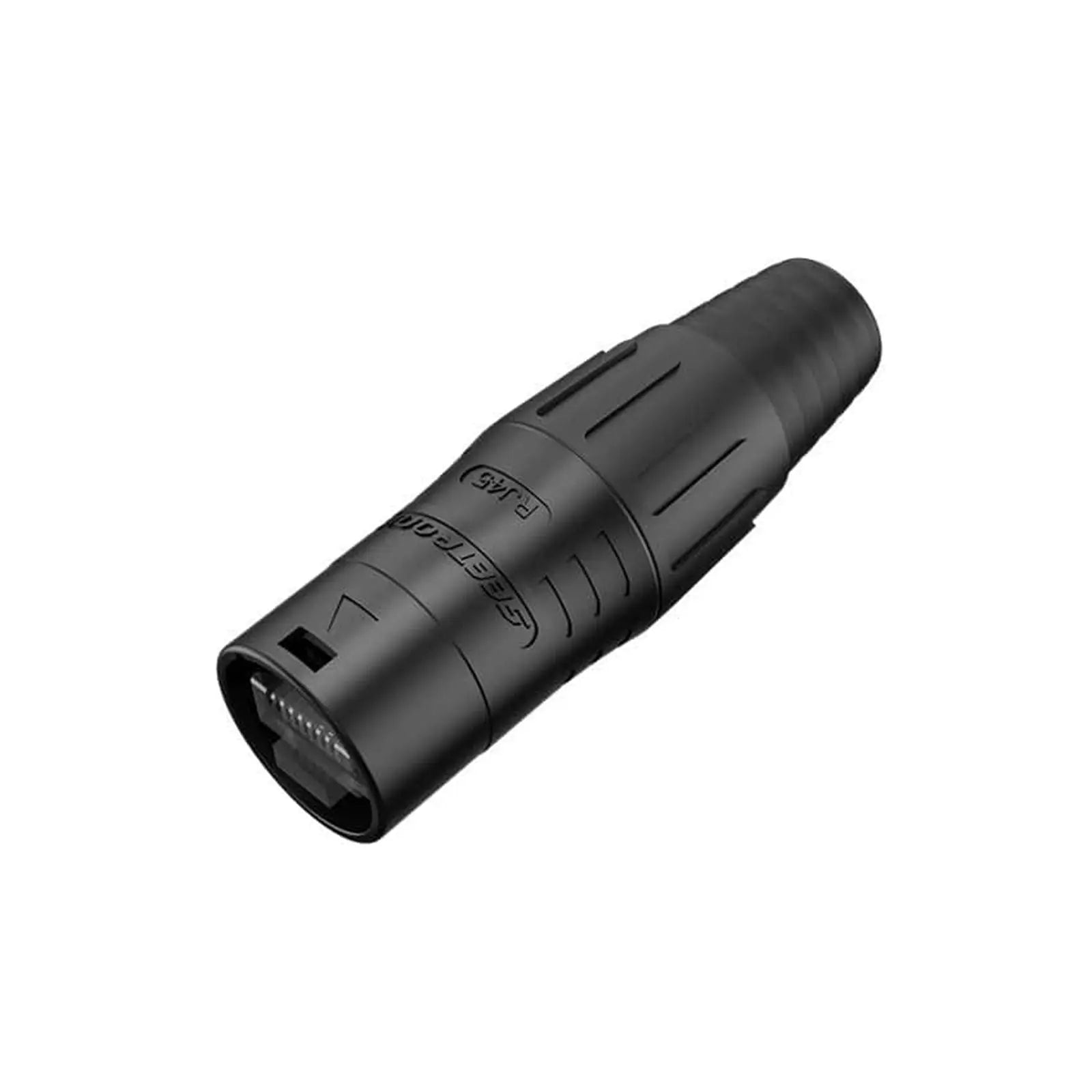 The Seetronic SE8MC‑02‑30‑B‑LOD is a heavy-duty RJ45 cable carrier connector with a black-plated die-cast zinc alloy housing engineered for harsh outdoor and industrial environments. This IP65-rated assembly accepts cables 7.5–9mm OD supports both dovetail and standard RJ45 plugs and ensures a secure weatherproof Ethernet connection. Robust RJ45 cable carrier with black-plated die-cast zinc alloy housing IP65-rated sealing for harsh outdoor use Supports standard and dovetail-clip RJ45 plugs (RJ45 plug not included) Compatible with cables 7.5–9mm OD Latch-lock design prevents accidental disconnects Supplied with boot cable clip and housing in individual packaging