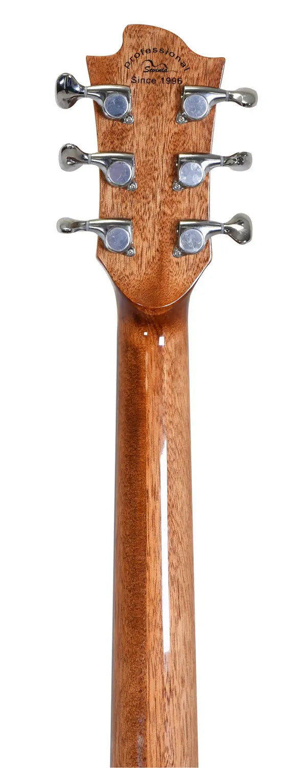 Sevinia introduces this range of craftsman-built electro-acoustic guitars with solid wood tops and high quality laminate back and sides. Variants in different body styles and two distinct wood combinations gives a choice of acoustic sound and projection, whilst each is equipped with a 3-band EQ and integral tuner for amplified performance. An Okoume neck supports a rosewood fingerboard with offset dot markers and 20 low profile frets. Tuning is handled by a high quality set of 3-a-side closed-geared tuners. Multi-ply binding and high gloss finish complete these high quality instruments, offering uncompromised features and performance for discerning acoustic players.