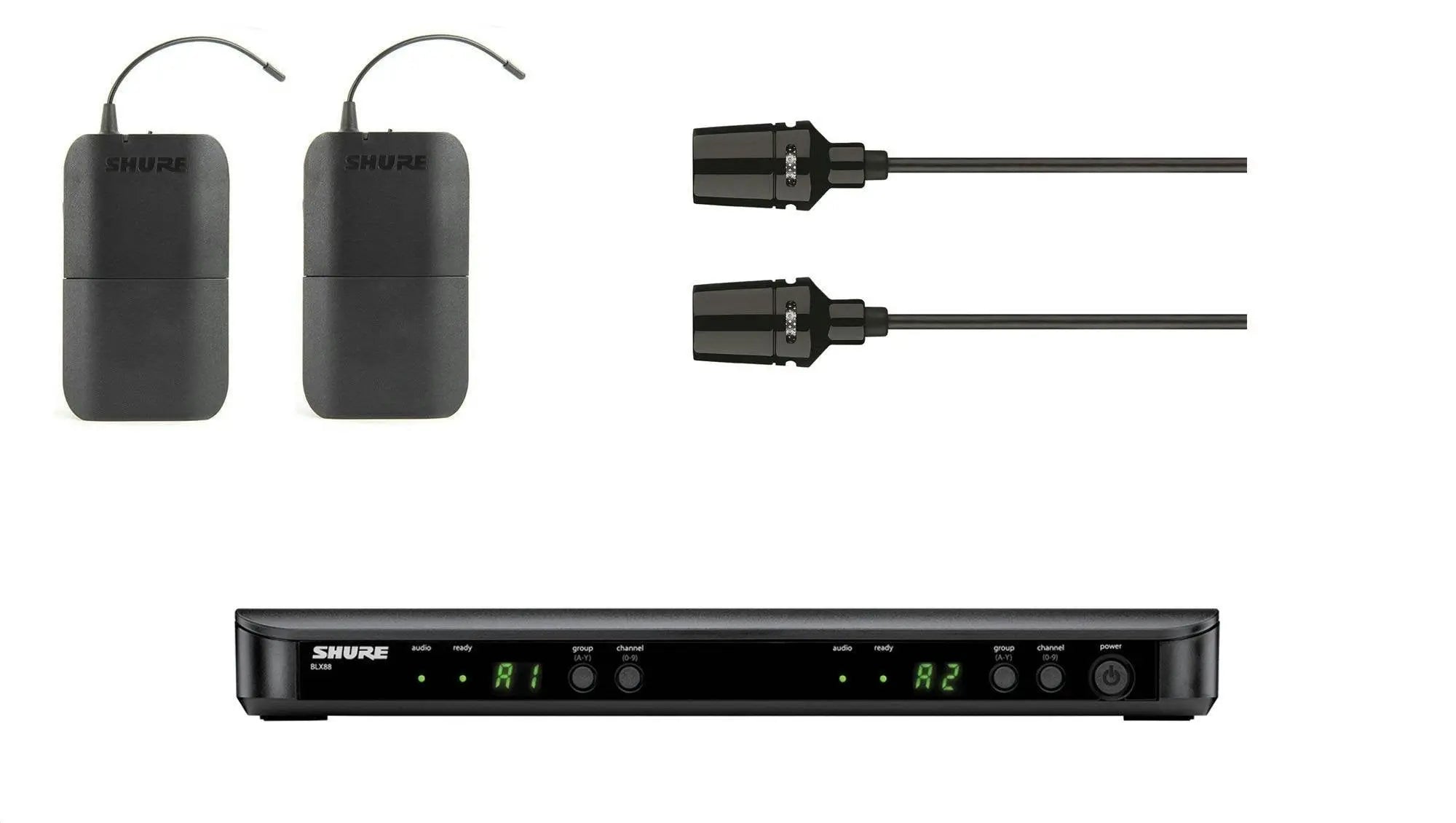 The Shure BLX188UKCVL dual wireless microphone system offers an incredibly flexible solution ideal for presentations and performances which require 'hands-free' operation. From vocal performances to conference presentations the PG185 lavalier microphone neatly clips onto clothing providing consistent and clear vocal reproduction allowing you to concentrate on the show. The BLX1 bodypack transmitter ensures the smooth and seamless transmission of signals without the loss of audio quality and clips neatly out of sight. Featuring professional quality sound combined with reliable and intuitive user operation the BLX188UKCVL system allows the use of a both lavalier microphones alongside each other using BLX88 dual receiver. The system includes: 2 x CVL lavalier condenser microphones 2 x BLX1 body pack transmitters (for CVL microphones) and BLX88 dual channel receiver. Channel 38 - License required The Shure BLX range operate on the K3E frequency range of 606 - 630 MHZ which requires a shared UHF license.These are available from Ofcom more details can be found here:Āhttps:www.ofcom.org.ukmanage-your-licenceradiocommunication-licencespmsepmse-technical-infomics-monitorsshared