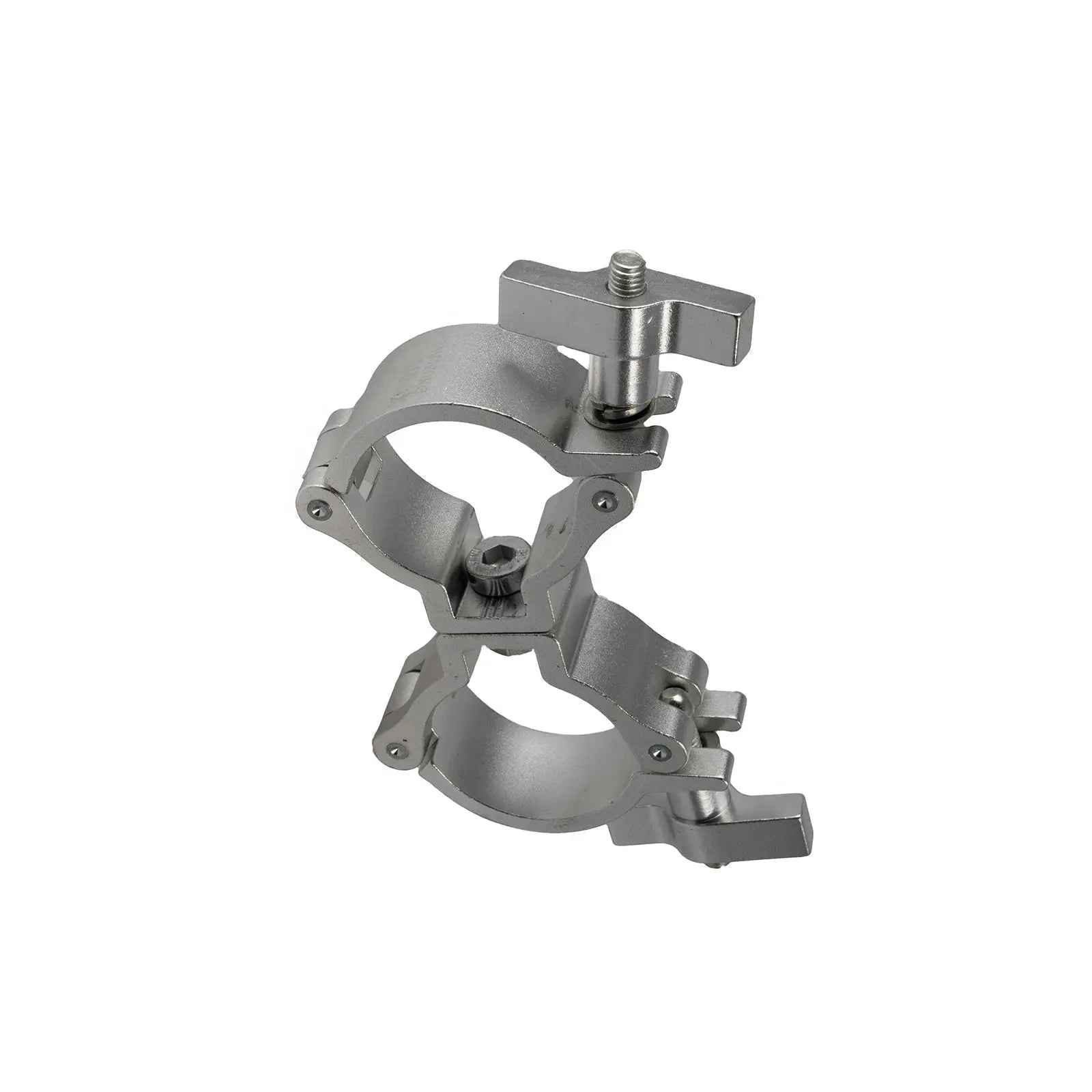 50kg safe working load Fits 48-51mm diameter tubes Manufactured from high-grade aluminium Lightweight design for easy handling Wing-nut fastening for secure attachment 360° swivel for flexible positioning