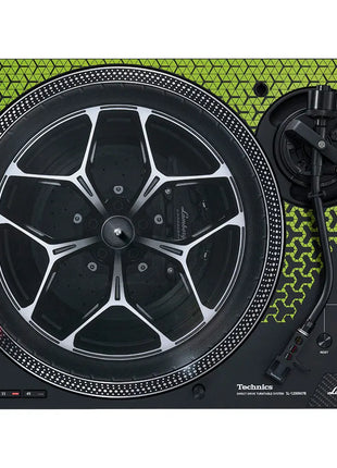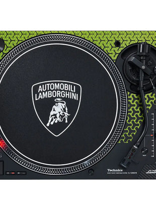 The Technics SL1200 M7B - Green is a stunning special edition turntable, born from an exciting collaboration between Technics and Automobili Lamborghini. This model combines the reliable performance of the SL-1200MK7/SL-1210MK7 with a striking design inspired by Lamborghini’s iconic Y-shape pattern, finished in a vibrant green that complements the Italian automotive brand's super sports cars. It's a collector's piece that delivers high-performance DJing alongside exclusive automotive artistry.