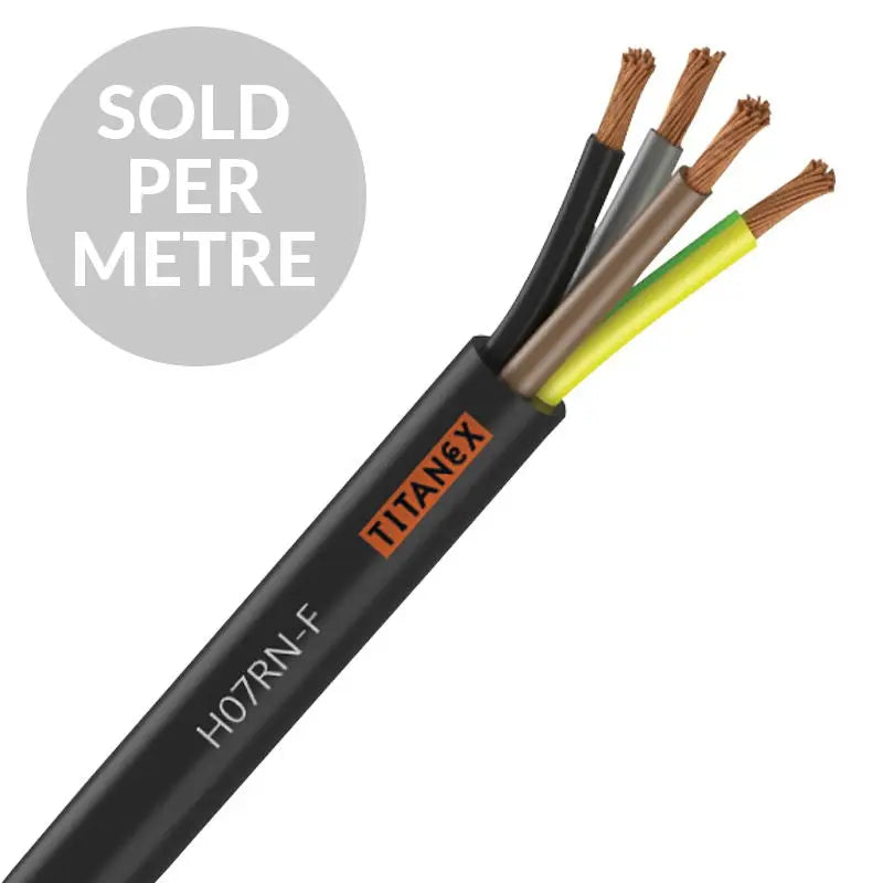 For more than 50 years the TITANEX® cable range has been recognised as the best choice for mobile and fixed installations in industrial environments. Robust yet flexible the TITANEX® H07RN-F rubber cable range offers exceptional performance ease-of-use and withstands the toughest of conditions such as hard-wearing environments extreme temperatures and most chemicals. They are also suitable for public areas and temporary events such as festivals concerts or sports competitions where the cable is often laid directly on the ground with no protection. Please note: Shipping charges may apply Sold per metre (Please specify your requirements in the notes section when ordering eg 20m in 1m cuts 50m in 10m cuts etc) Oil resistant flame retardant according to IEC/EN 60332-1-2 standard Chemical resistant flame retardant according to IEC/EN 60332-1-2 standard Chemical resistant cross-linked elastomer insulation Bare copper conductors Operating temperature range -25 to 55°C Maximum conductor temperature in service 90°C