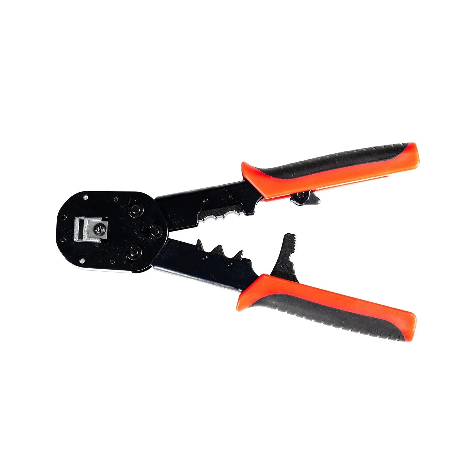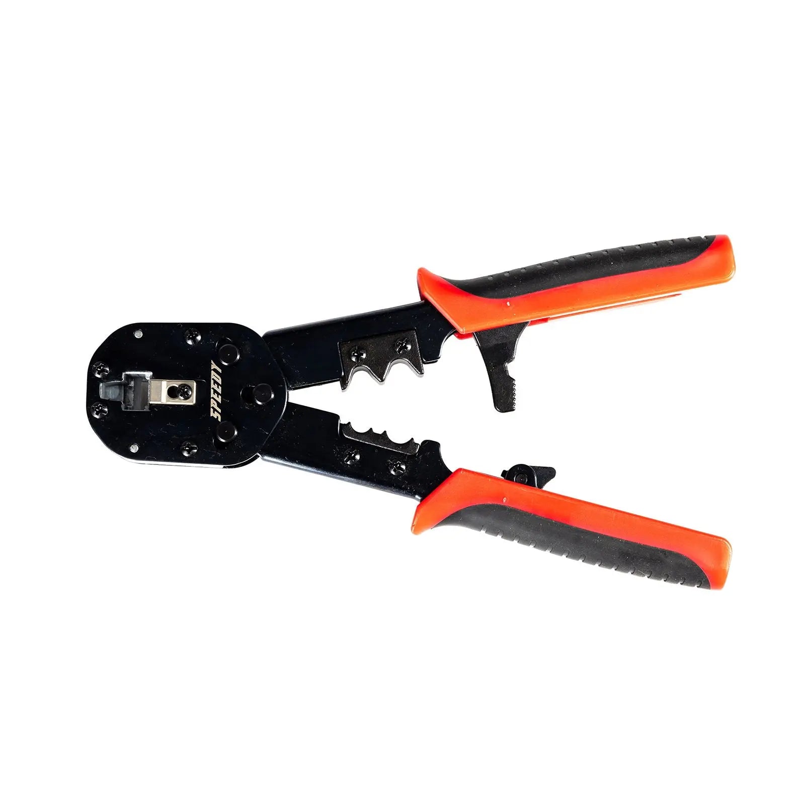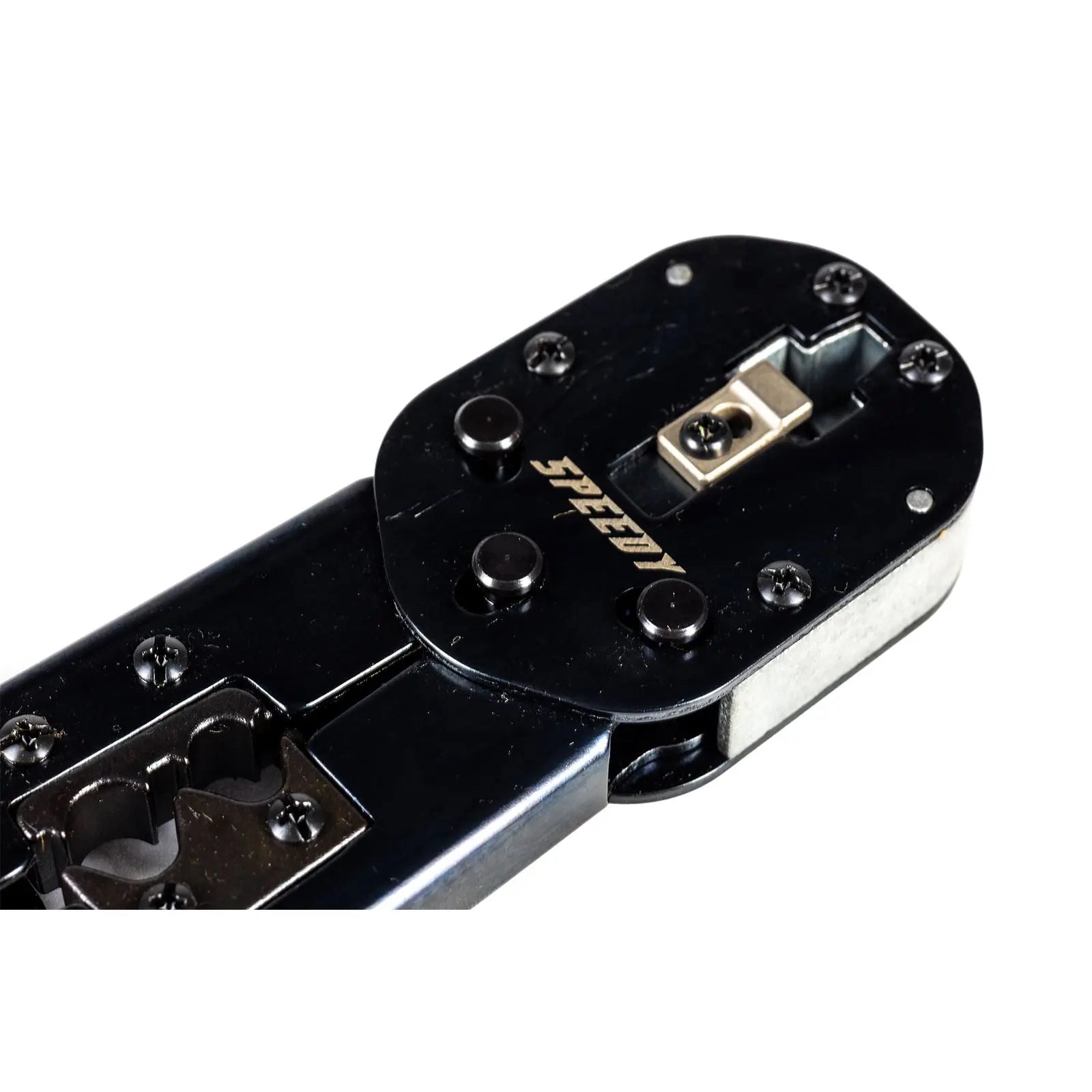 Our Contractor Grade ratchet crimp tool is designed for professional installers using SPEEDY RJ45 and similar feedthrough plugs. This high quality tool offers excellent value and has been specially designed to ensure that SPEEDY RJ45 terminations are not only faster than using conventional plugs but also consistent reliable and repeatable.Replacement cutting blades TBSPDY5 are suitable for at least 500 terminations which enable ongoing use of the tool for years to come. Crimps Category 5 6 6A and 8 plugs as well as standard (non feed-through) RJ45 plugs Crimps and trims surplus wires in a single operation with a neat flush finish Heavy duty high quality tool designed for everyday use 2x ‘V’ shaped facility for crimping rear shielding grip onto cables of differing outer diameter Ratchet will release when required pressure has been applied Ratchet ensures correct pressure when crimping plugs Ergonomic handles are comfortable to use and give maximum leverage with minimum effort Adjustable to enable crimps of RJ45 plugs with 1 or 2 compression points Precise CNC ground fabricated teeth for crimper Every termination meets FCC specifications Suitable for crimping cable diameters OD 7.5 and 9.5mm