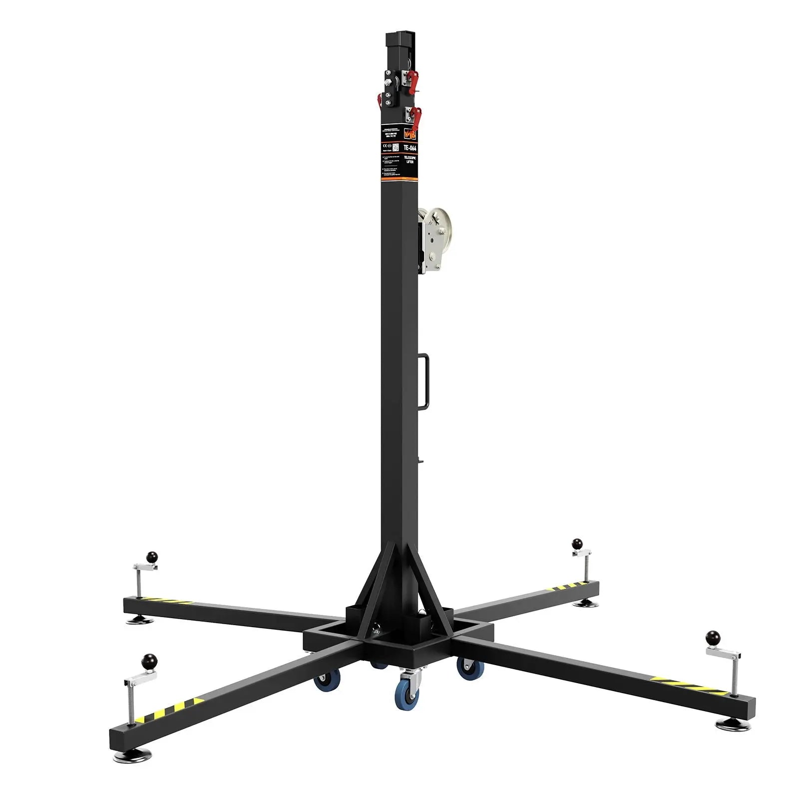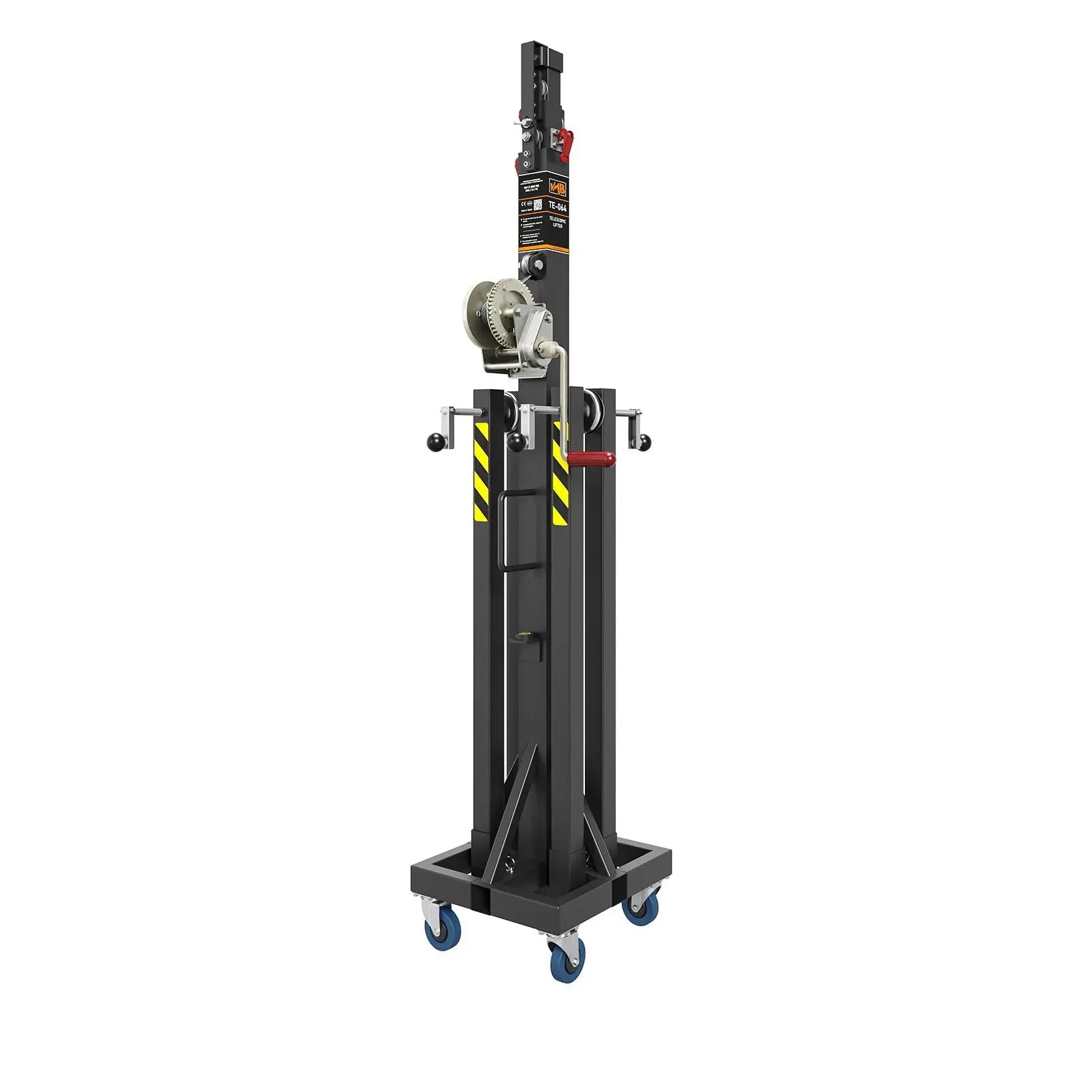 The TE-064 lifting tower has a steel base with four rubber wheels making transport very easy. It is capable of lifting 150kg to 5.35m. Featuring stabilizers on the 4 legs with anti-sliding injected rubber supports and a spirit level for accurate levelling. It is composed of four steel X profiles with high resistant anti-torsion steel cable and is guided through reinforced pulleys. A wide range of accessories are available for this compact telescopic lifter. As with all VMB lifting towers safety is guaranteed with the ALS automatic locks patented and exclusive to VMB Prolifts. The ALS is an automatic locking system which ensures the lift is secured during erection and descent and makes it impossible for the load to fall. Please note: Shipping charges may apply 2 year warranty Max. height: 5.35m Max. load: 150kg ALS Locks offer the best in load protection High quality AL-KO winches loaded with steel cable Manufactured in Europe to both BGV C1 and CE (2006/42/CE) standards