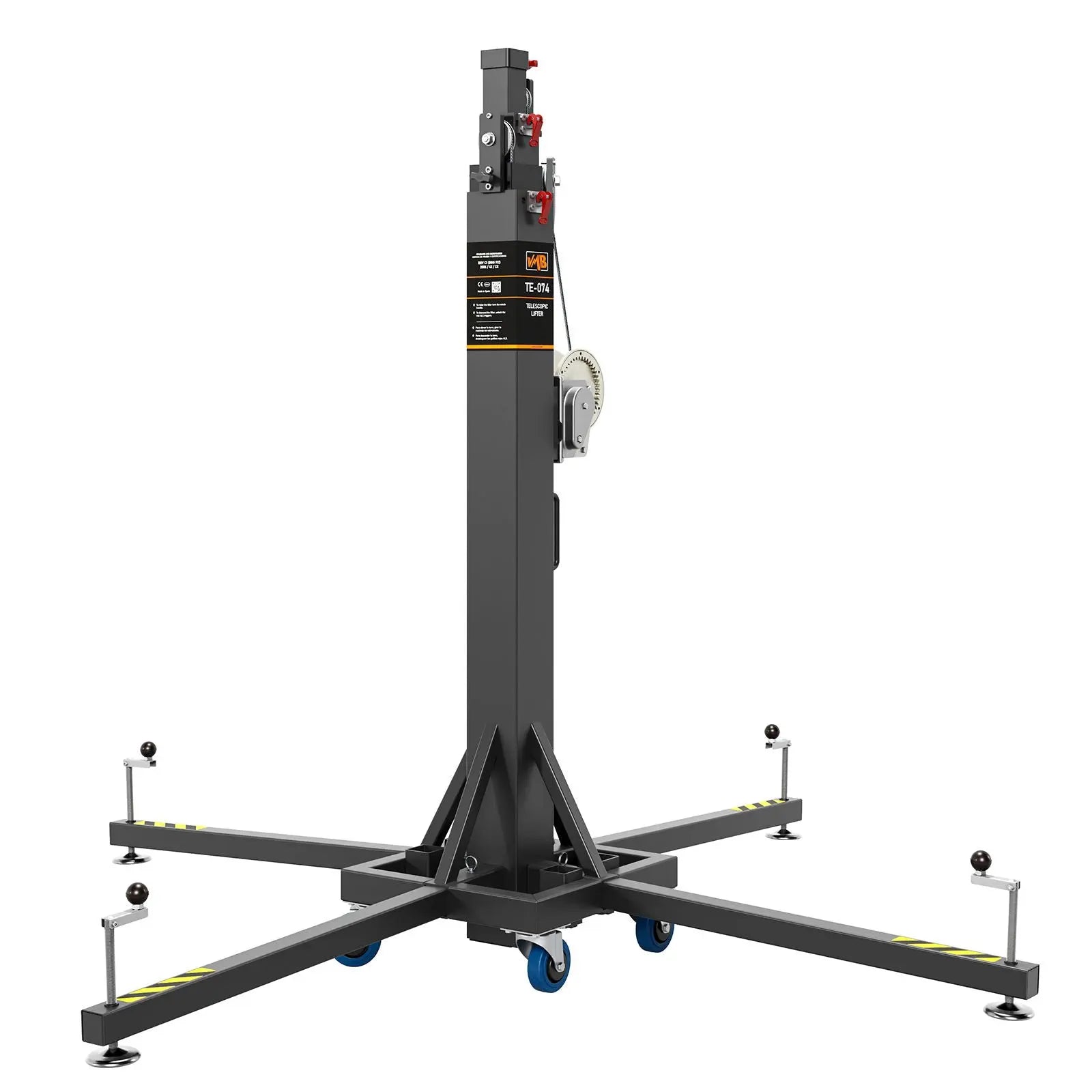 This lifting tower has a larger steel base than its predecessors which gives it greater stability. The tower can be pushed into a van or truck by pre-assembling the RH-1 transport accessory. It is capable of lifting 250kg to 5.35m has 4 large stabilizers with non-slip rubber plates and a spirit level for accurate levelling. It is composed of four steel X profiles with high resistant anti-torsion steel cable and is guided through reinforced pulleys. As with all our lifting towers safety is guaranteed with our ALS automatic locks patented and exclusive to VMB Prolifts. The ALS is an automatic locking system which ensures the lift is secured during erection and descent and makes it impossible for the load to fall in the unlikely event of cable breaking. Please note: Shipping charges may apply 2 year warranty Max. height: 5.35m Max. load: 250kg ALS Locks offer the best in load protection High quality AL-KO winches loaded with steel cable Manufactured in Europe to both BGV C1 and CE (2006/42/CE) standards