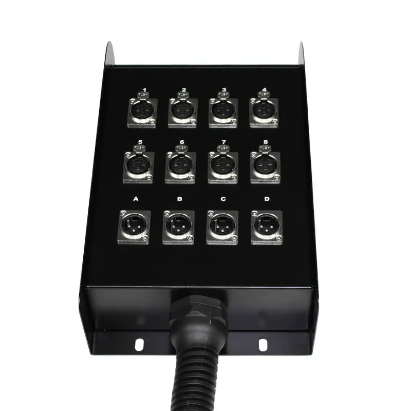 The W Audio XLR Multicore series is not only ideal for live applications leaving you with a well organised stage but is also a great asset for studios. They feature several connector combinations which cover a host of applications. Cables are fitted with high quality connectors ensuring top-grade signal transmission. Each cable has its own identification marking making it easy to distinguish between the various connections. Heat-shrink tubing keeps the cables neatly bundled and protects them from breaking and a pull relief ensures that the inputs and outputs of audio mixers don’t suffer from the weight of the cables. 8 sends 4 returns Steel stage box complete with carry handle mounting holes and large strain relief grommet Screened balanced audio cable