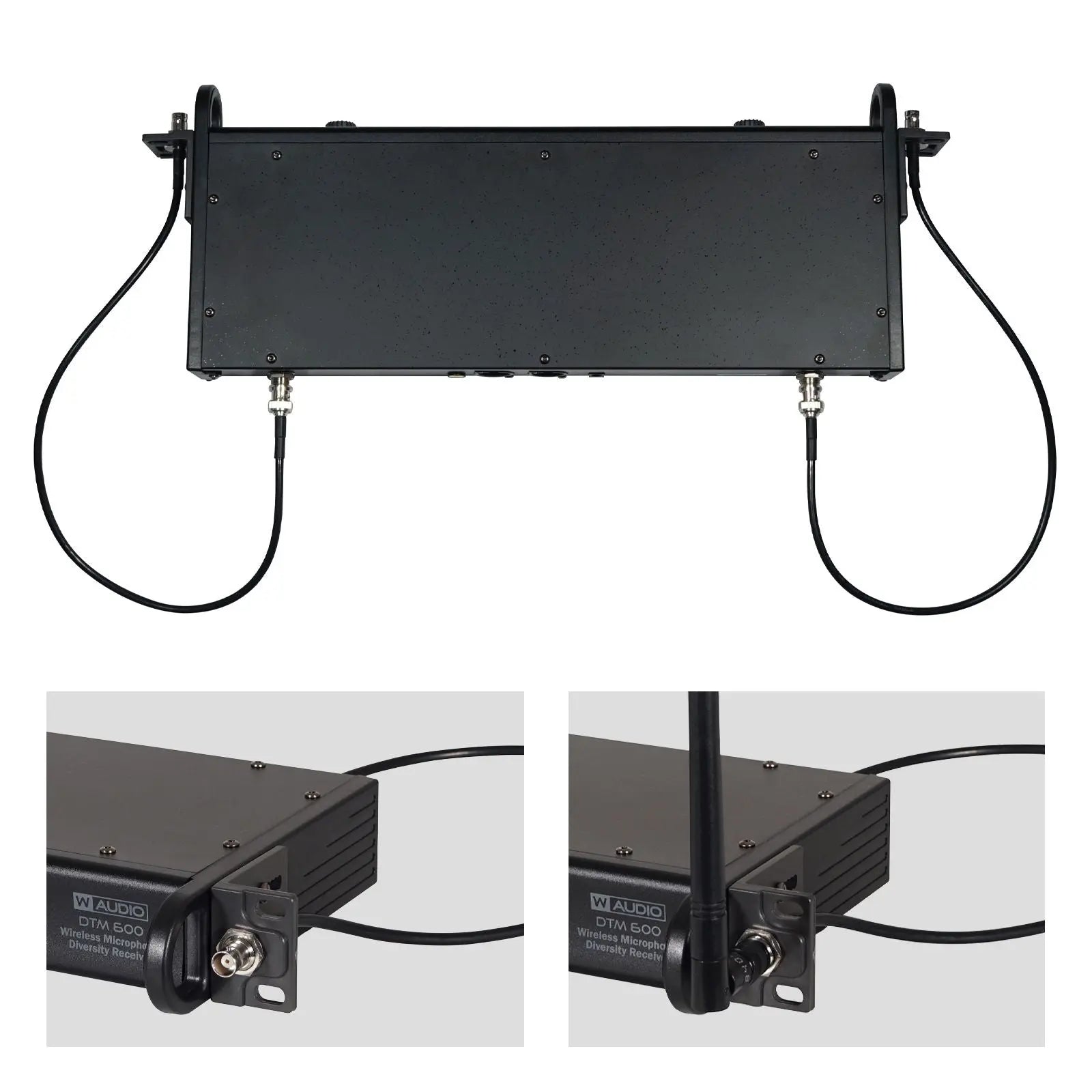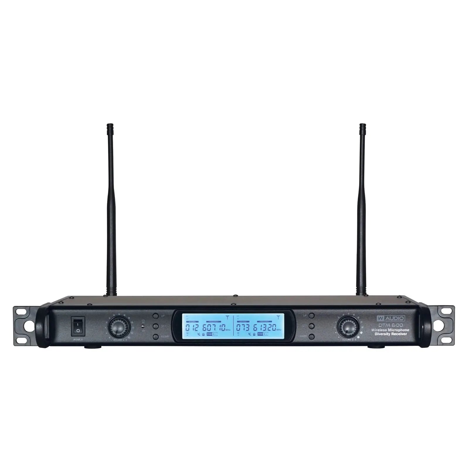 DTM 600 series wireless microphones feature twin UHF belt pack or handheld systems with 80 selectable frequencies allowing up to eight channels (four systems) to be operated with a clear CH38 environment. Available in either (606-614Mhz) for the DTM 600 or (863-865Mhz) for the DTM 800; both systems utilise a true diversity full width receiver for the ultimate in RF stability. Outstanding vocal reproduction and stable wireless connectivity allow freedom of movement on stage. These systems offer crystal clear sound reproduction and rock solid reliability. The transmitters feature ergonomic design with a rugged housing to stand up to the rigours of the road. The flexibility of the systems may be increased by purchasing the additional DTM 600BP. Phase Lock Loop (PLL) IR sync facility for simple setup True diversity receiver 606-614Mhz - 80 frequencies Large LCD receiver display including RF level AF level channel and frequency LCD transmitter display Removable BNC antennae Auto frequency scanning Balanced XLR output for each channel plus unbalanced mixed output Frequency response (handheld): 40Hz-15kHz Audio output level: 400mV Dynamic range: 96dB Full width rack mount receiver Up to 4 DTM 600 systems can be used simultaneously Optional 12V DC 1000mA EU power supply available: Order code MIC70P Condenser microphone supply voltage: 3V Loaded with Version 2 Software