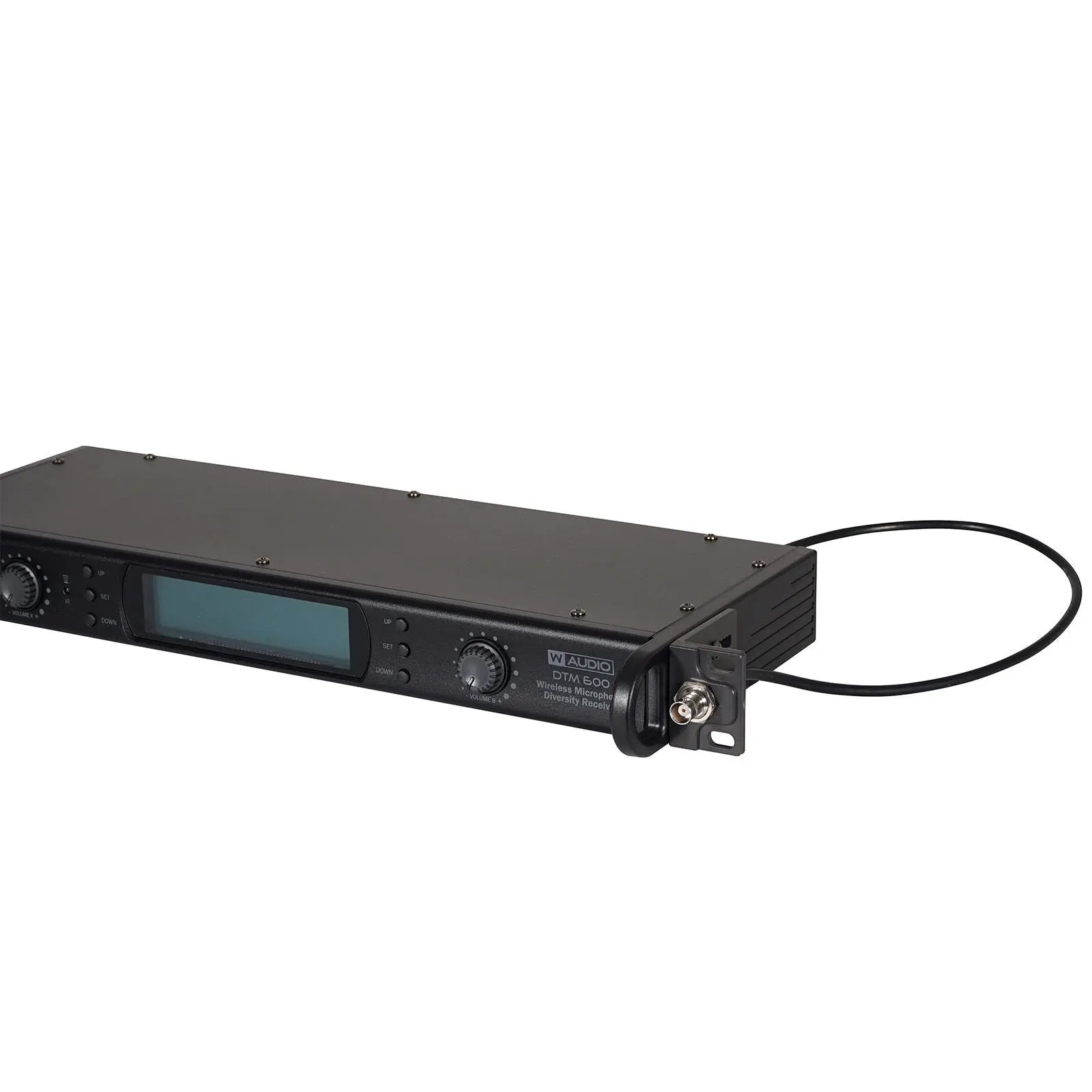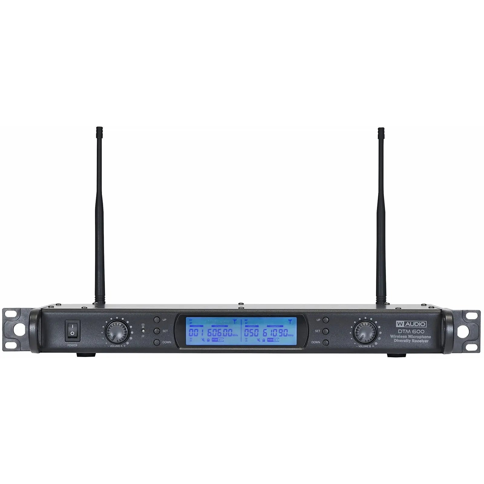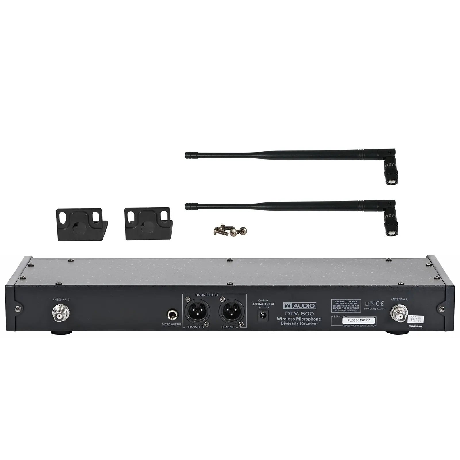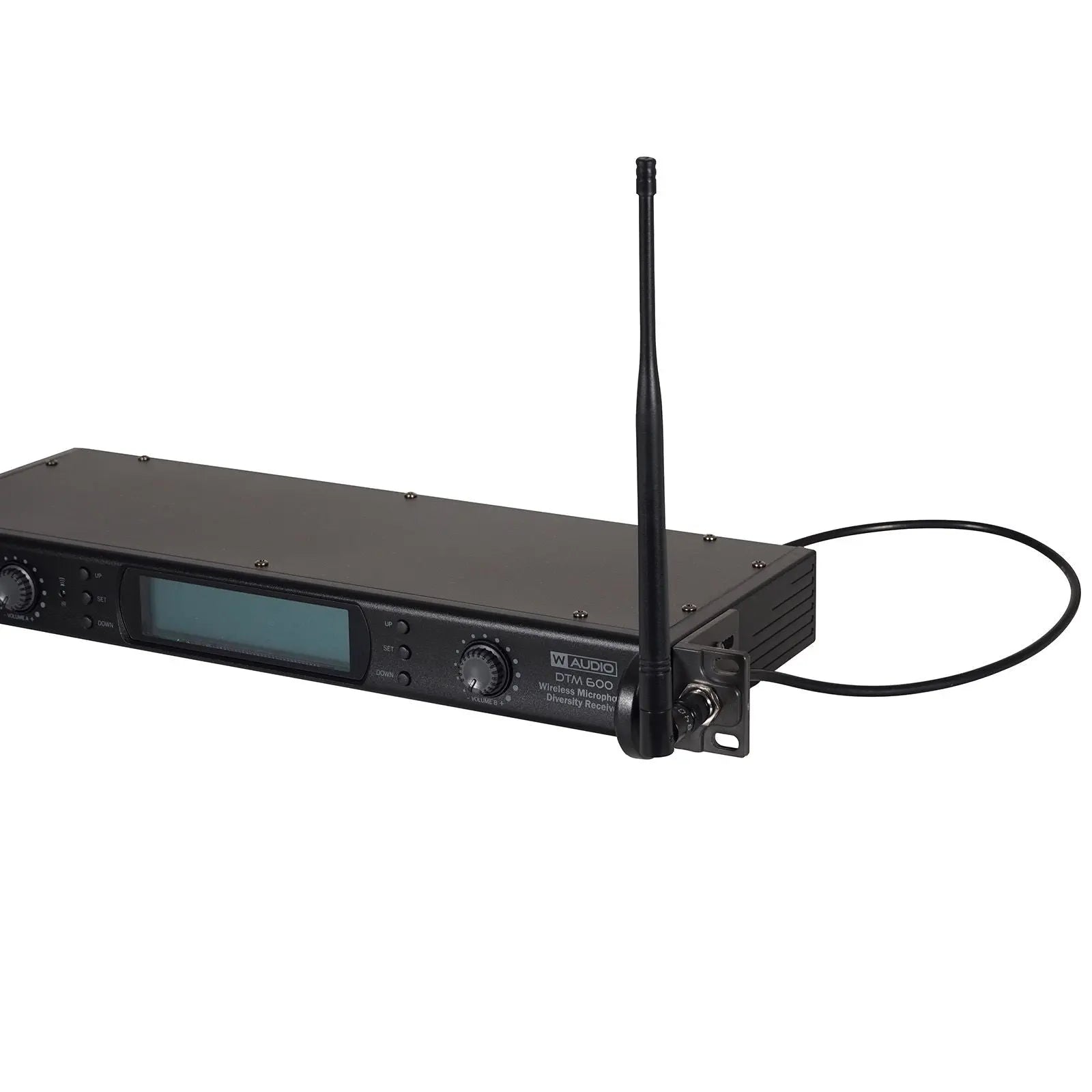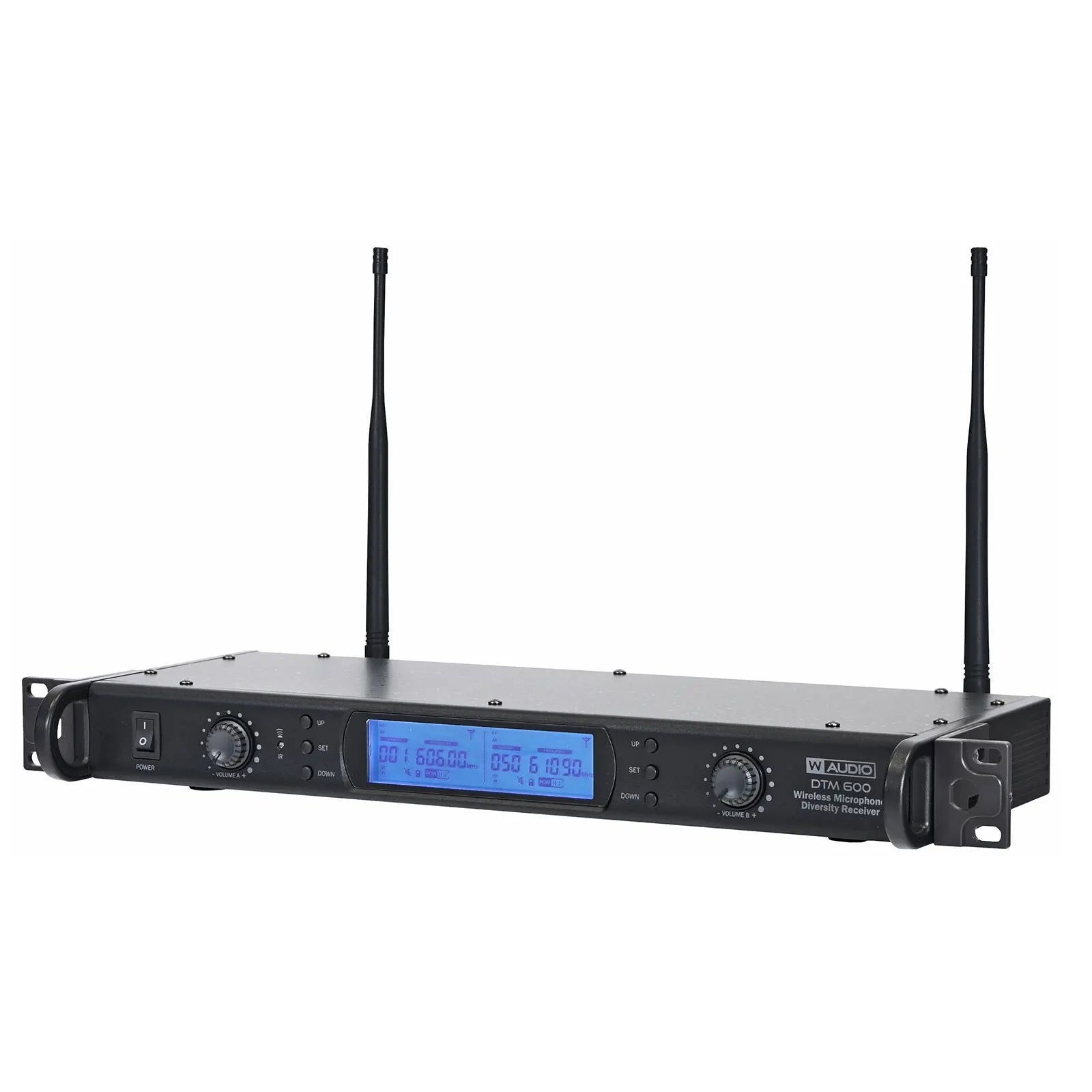 DTM 600 series wireless microphones feature twin UHF belt pack or handheld systems with 80 selectable frequencies allowing up to eight channels (four systems) to be operated with a clear CH38 environment. Available in either (606-614Mhz) for the DTM 600 or (863-865Mhz) for the DTM 800; both systems utilise a true diversity full width receiver for the ultimate in RF stability. Outstanding vocal reproduction and stable wireless connectivity allow freedom of movement on stage. These systems offer crystal clear sound reproduction and rock solid reliability. Metal bodied transmitters feature ergonomic design with a rugged housing to stand up to the rigours of the road. The flexibility of the handheld systems may be increased by purchasing additional DTM 600BP Phase Lock Loop (PLL) IR sync facility for simple setup True diversity receiver 606-614Mhz - 80 frequencies Large LCD receiver display including RF level AF level channel and frequency LCD transmitter display Removable BNC antennae Auto frequency scanning Balanced XLR output for each channel plus unbalanced mixed output Frequency response (handheld): 40Hz-15kHz Audio output level: 400mV Dynamic range: 96dB Full width rack mount receiver Up to 4 DTM 600 systems can be used simultaneously Optional 12V DC 1000mA EU power supply available: Order code MIC70P Loaded with Version 2 Software