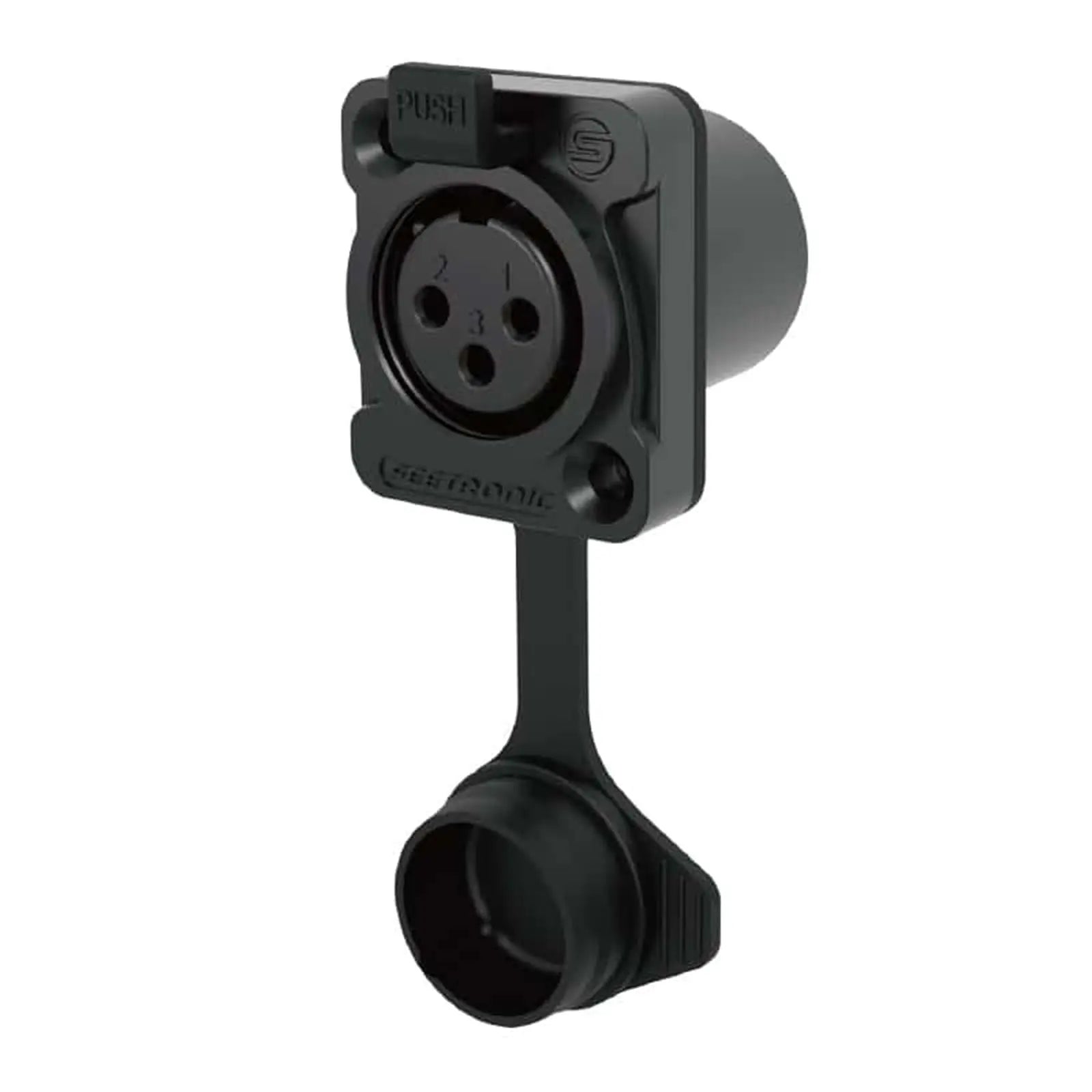 The Seetronic K3F2C‑W‑B is the industry’s first front-install 3-pin XLR female chassis connector with an IP65 waterproof rating. Featuring a black-plated die-cast zinc D-size shell hinged protective cap gold-plated contacts and air-tight rear sealing rated to 0.2 MPa it delivers reliable protection in dusty or damp environments—ideal for outdoor lighting stage rigs and weather-resistant audio setups.