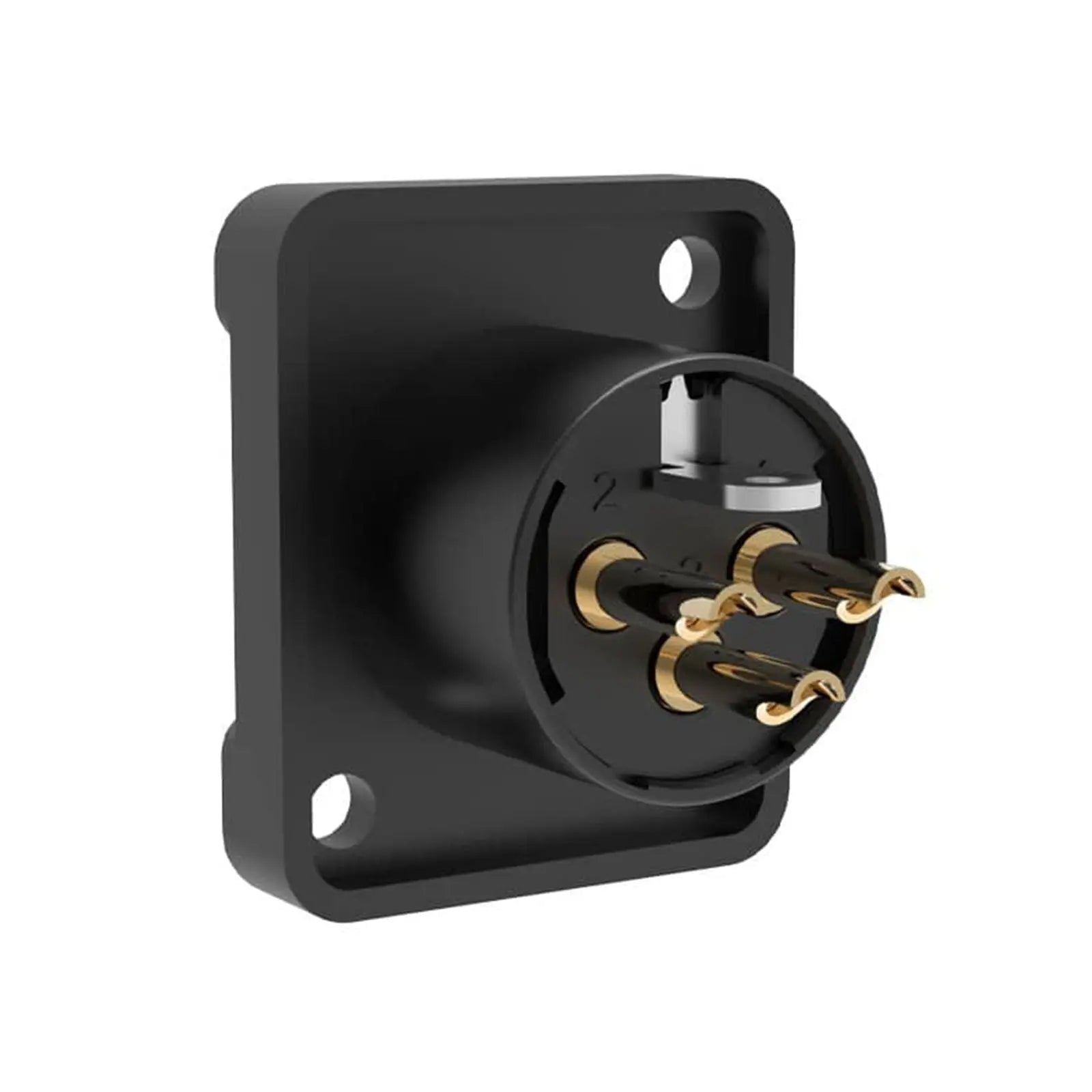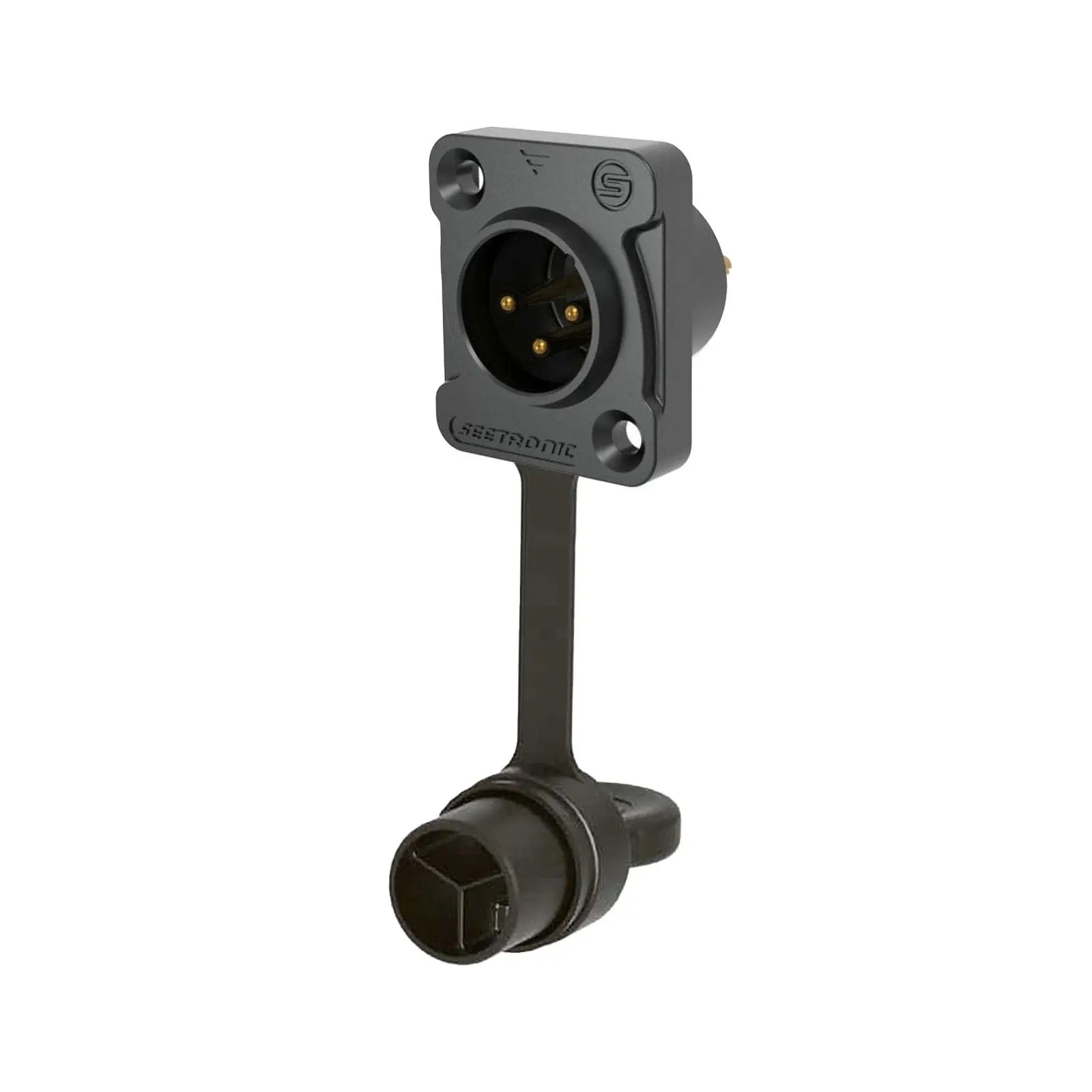 The Seetronic J3F2C‑W‑B‑67 is a rugged IP67-rated 3-pin male XLR chassis connector with a black-plated housing engineered for outdoor DMX lighting audio and industrial signal applications. Featuring gold-plated contacts a D-shaped zinc-alloy shell and an airtight rear seal that withstands 0.2 MPa this connector delivers superior protection against dust water and mechanical stress. Front-panel mounted and compliant with IEC standards it is ideal for demanding environments requiring reliable performance.