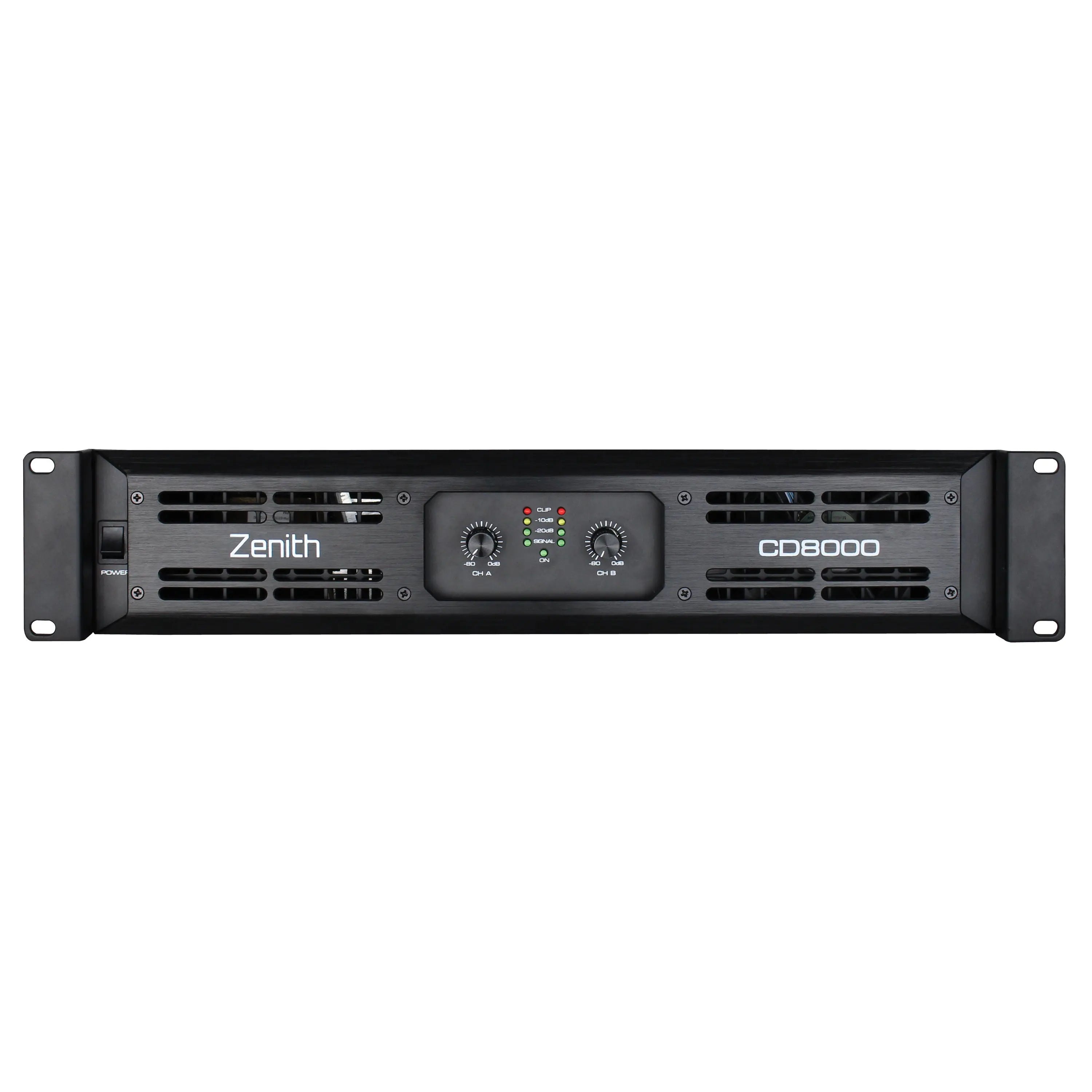 The CD series feature high output power outstanding sound quality and superior stability for a wide range of installed sound systems as well as portable live sound applications. Available in two and four channel versions and with an RMS wattage of up to 8000W this series feature class D technology in a compact 2U package. Automatic clip limiting along with high efficiency tunnel cooling and DC fans ensure reliability time after time. Power output @ 8Ω: 2 x 1500Wrms Power output @ 4Ω: 2 x 2500Wrms Power output @ 2Ω: 2 x 4000Wrms Power output bridge @ 8Ω: 1 x 5000Wrms Power output bridge @ 4Ω: 1 x 8000Wrms Frequency response: 20Hz to 20kHz Input sensitivity: 1.2V 32dB or 26dB Damping factor: 200 Slew rate: 22V/uS Min. Load impedance (Stereo): 2Ω Min. Load impedance (Bridge): 4Ω Protection circuits: Soft start limit thermal short circuit overload DC fault protection and AC power supply fuse LED indicators: Power active signal and clip Input connections: 2 x XLR sockets 1 x powerCON mains input Output connections: 2 x speakON connectors and 2 pairs of binding posts Additional features: Switchable stereo parallel and bridge and switchable low cut filters (30Hz 50Hz and OFF)